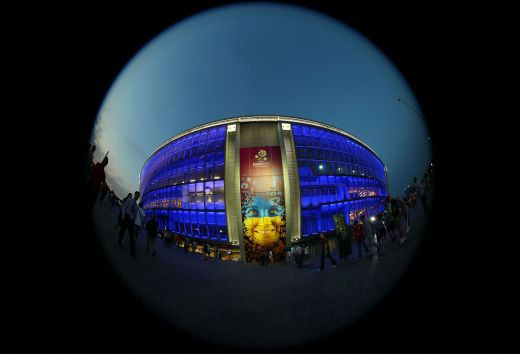 '26: Atmosfera superba pe Donbass Arena - spaniolii fac valuri in tribune. Foarte ciudat ca vedem scaune goale la un meci de o asemenea importanta.