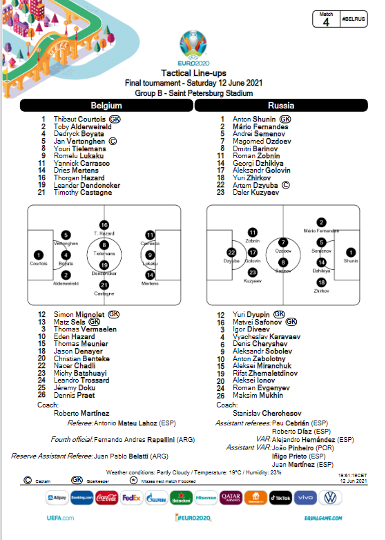 Belgia - Rusia, din Grupa B a Campionatului European va fi meciul eveniment al zile. Confruntarea va avea loc pe St. Petersburg, de la ora 22.00.