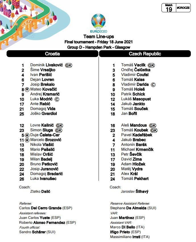 Este a doua oara consecutiv cand cele doua echipe nationale sunt in aceeasi grupa la un Campionat European. In 2016, au impartit prima faza a competitiei cu Spania si Turcia, iar meciul direct s-a terminat 2-2. Pe Hampden Park din Glasgow, Cehia cauta prima victorie din istorie in fata Croatiei. In cele trei intalniri s-au inregistrat doua rezultate de egalitate, iar croatii s-au impus o singura data.