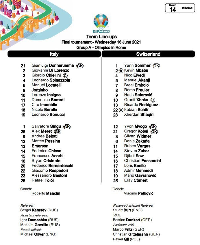 Min. 6: Prima actiune periculoasa la poarta Elvetiei! Immobile inalta balonul peste aparatorii elvetieni pentru Insigne, dar portarul intercepteaza balonul.