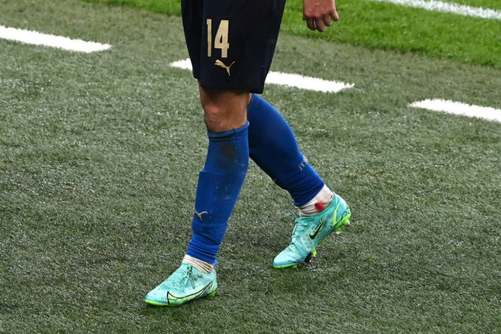 Italianul a fost schimbat de Mancini, in locul sau intrand Bernardeschi. La finalul partidei, in timpul sarbatorii declansate pe Wembley, fotografii au surprins cateva cadre in care se se observa glezna insangerata a lui Chiesa.