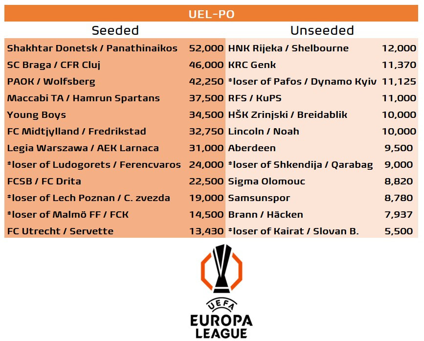 - Atât CFR Cluj, cât și FCSB vor fi capi de serie în play-off-ul Europa League. Tragerea la sorți va fi organizată de UEFA luni, 4 august, de la ora 14:00.