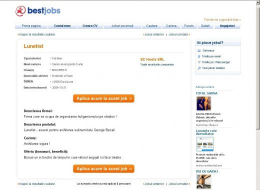 Becali le transmite fanilor ca accepta si injuraturi insa numai in pauza sau dupa meci. Intre timp, fanii Stelei au postat pe site-ul Best Jobs joburi pentru .. lunetisti.