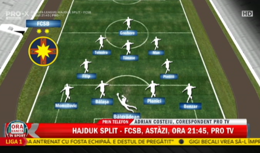 Hajduk Split - FCSB se vede in seara asta la PRO TV, de la 21:45. Returul de saptamana viitoare va fi transmis tot de PRO TV.