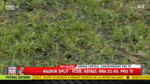 "Gazonul e foarte prost, a cedat in multe locuri dupa miutele de aseara. Acum trei saptamani a avut loc aici un festival de muzica electronica - Ultra Europe - care e si sponsor la Hajduk. De cinci ani se tine festivalul asta, iar oficialii de aici spun ca niciodata nu a aratat atat de rau gazonul. Au fost in jur de 80.000 de oameni pe zi la festival."