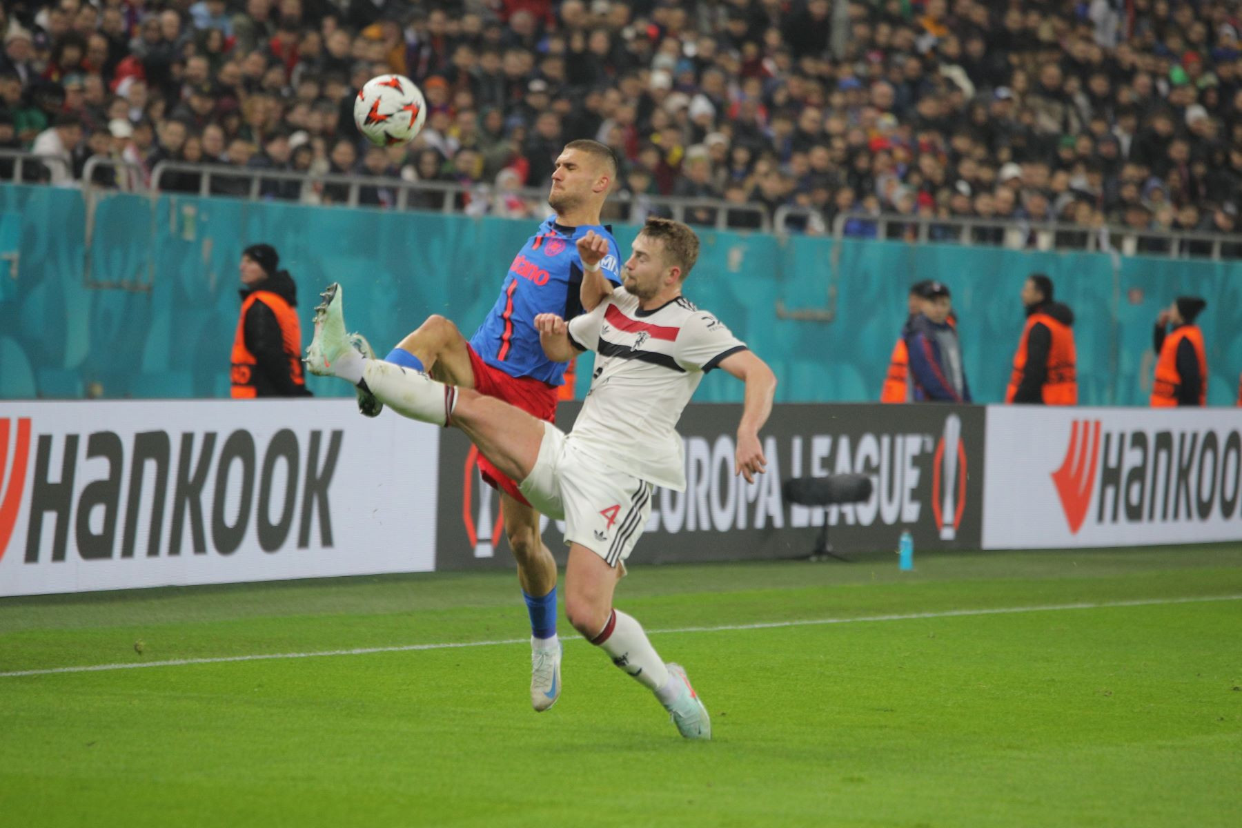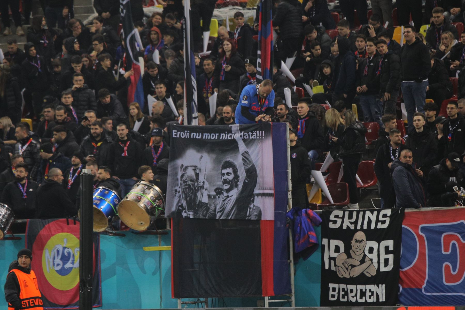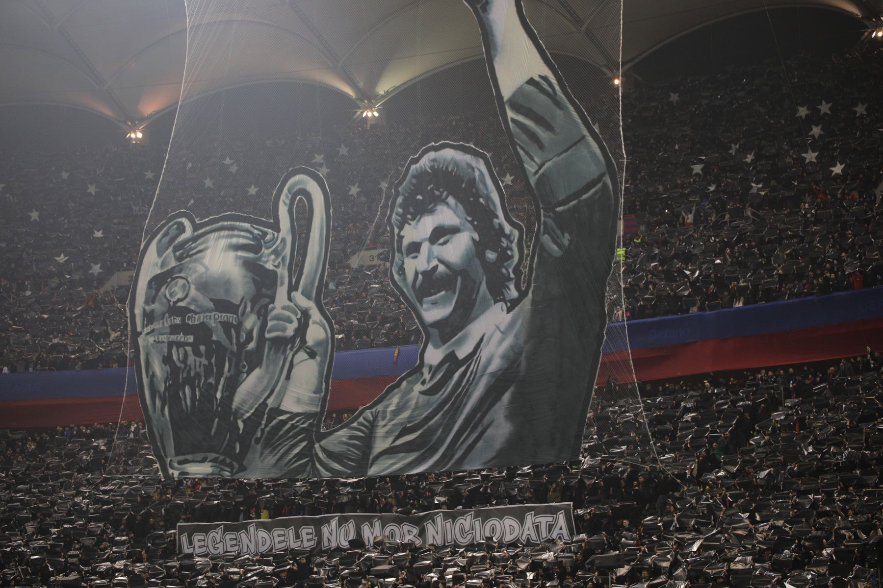 Patronul FCSB, Gigi Becali, și premierul Marcel Ciolacu s-au aflat printre cei 50.128 de spectatori care au fost prezenți la meciul dintre campioana României și "Diavolii Roșii". Unii spectatori au venit cu peste două ore înaintea partidei, pentru nu a prinde înghesuiala de la portile arenei, iar Peluza Nord a avut o coregrafie axată pe comemorarea lui Helmuth Duckadam, unul dintre cei mai mari portari din istoria Stelei.