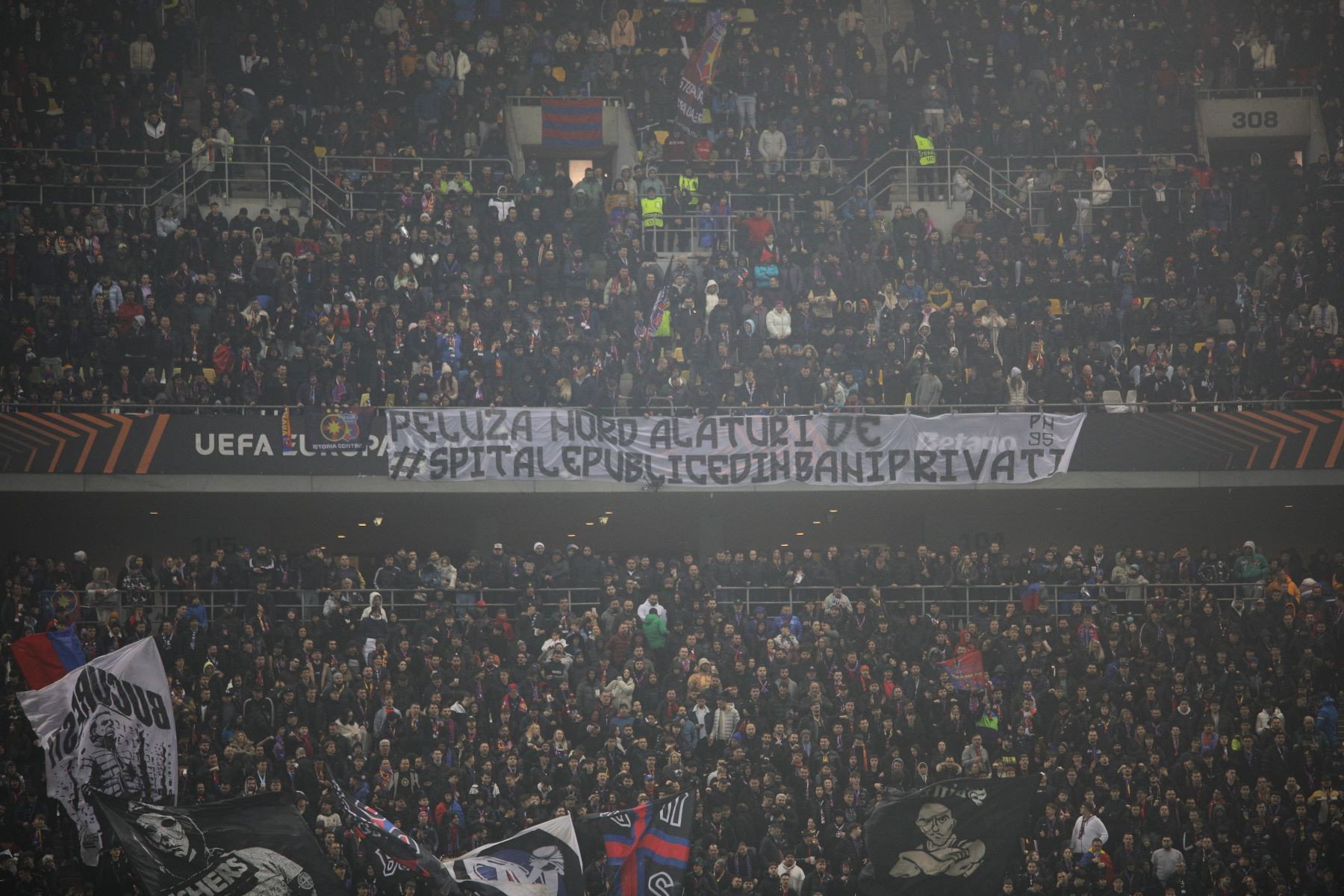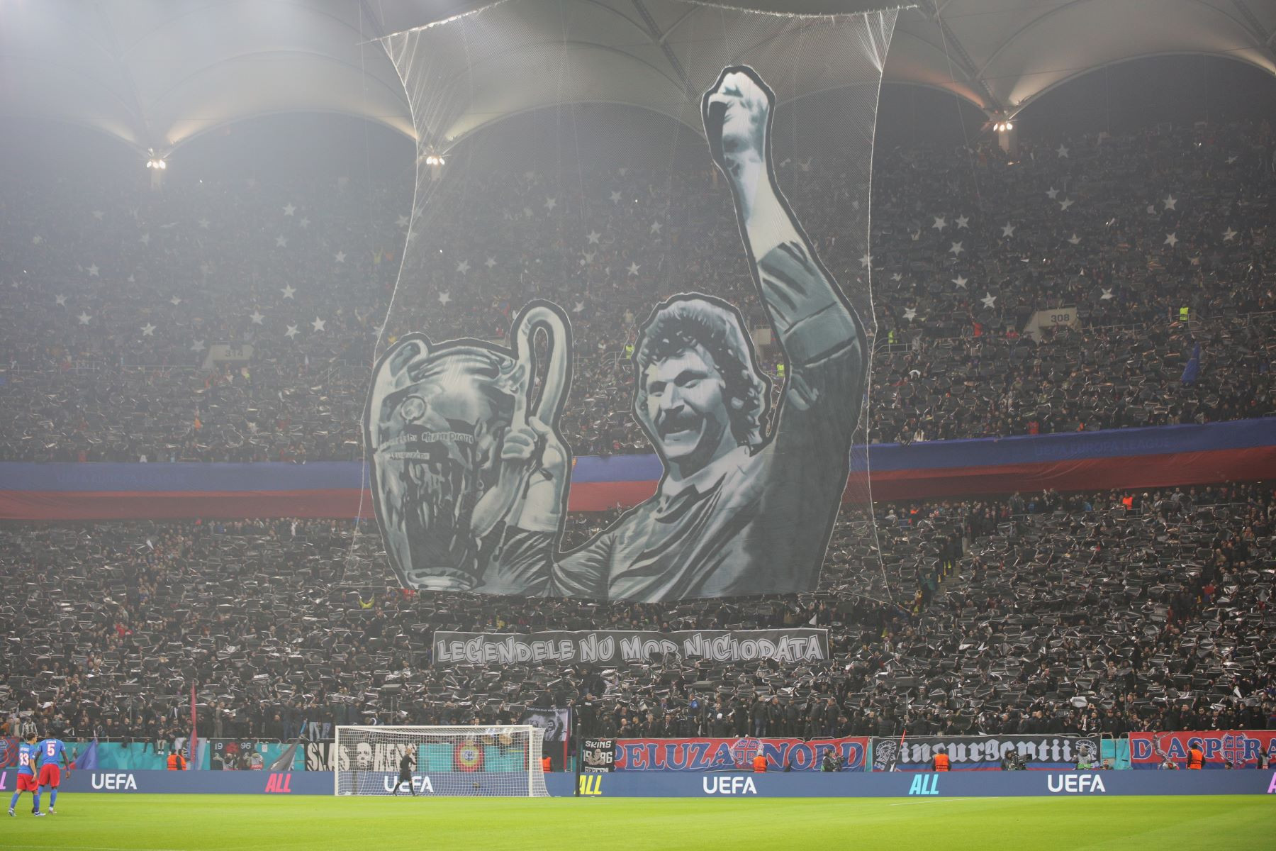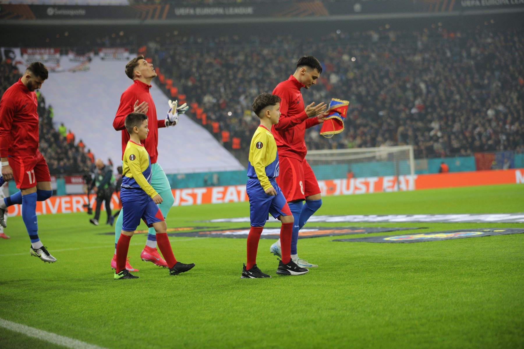 Patronul FCSB, Gigi Becali, și premierul Marcel Ciolacu s-au aflat printre cei 50.128 de spectatori care au fost prezenți la meciul dintre campioana României și "Diavolii Roșii". Unii spectatori au venit cu peste două ore înaintea partidei, pentru nu a prinde înghesuiala de la portile arenei, iar Peluza Nord a avut o coregrafie axată pe comemorarea lui Helmuth Duckadam, unul dintre cei mai mari portari din istoria Stelei.