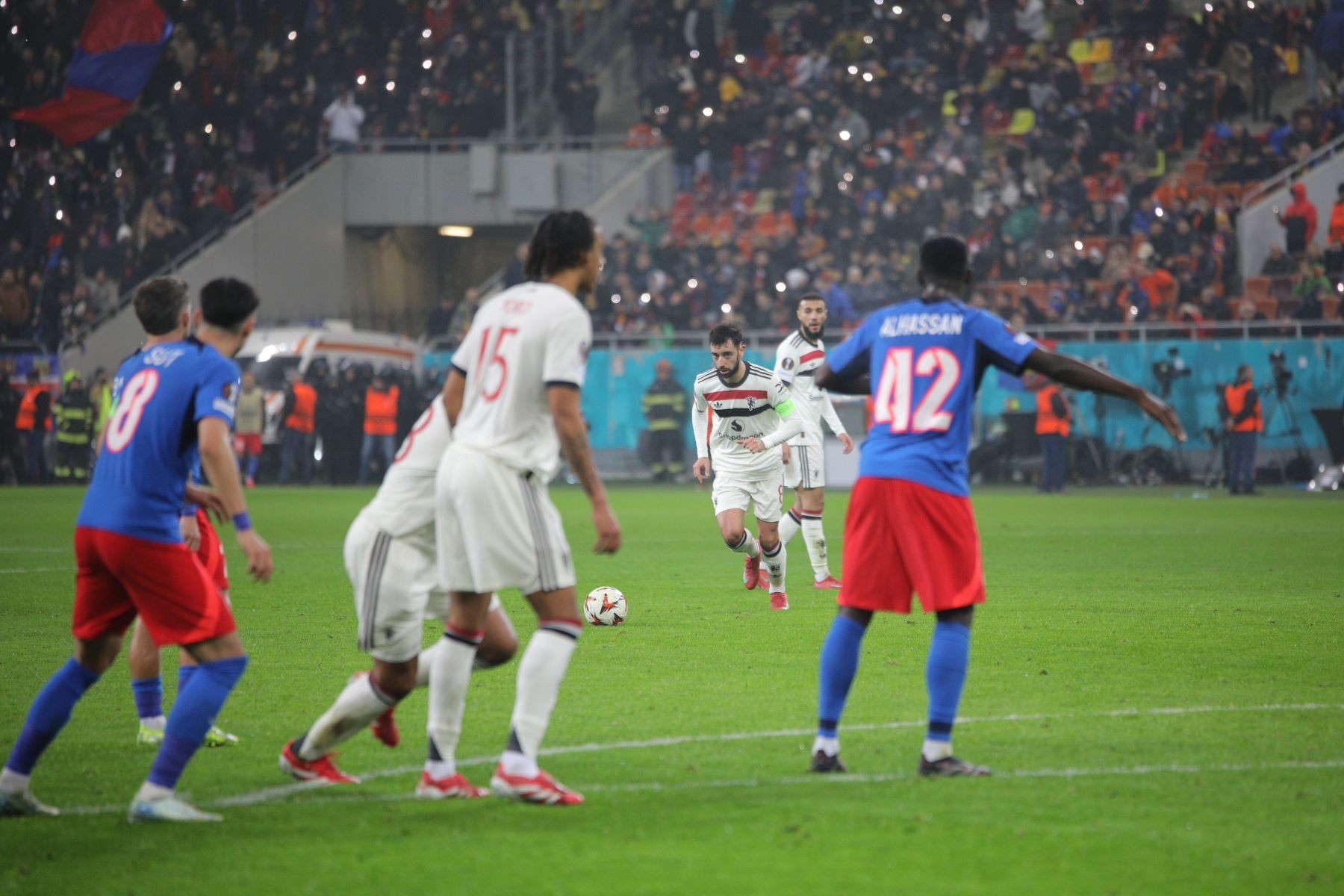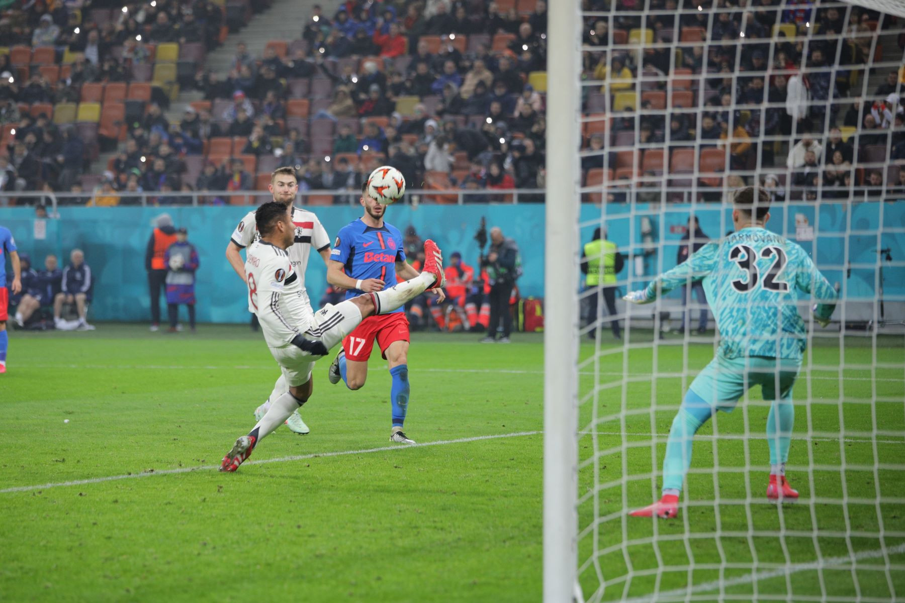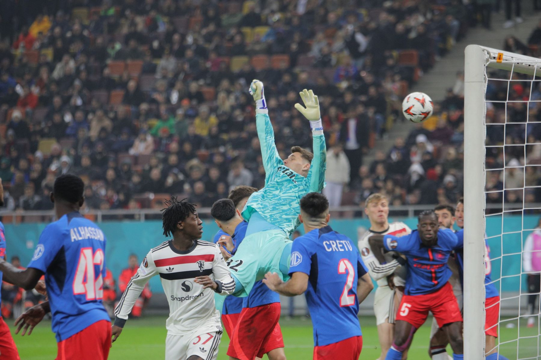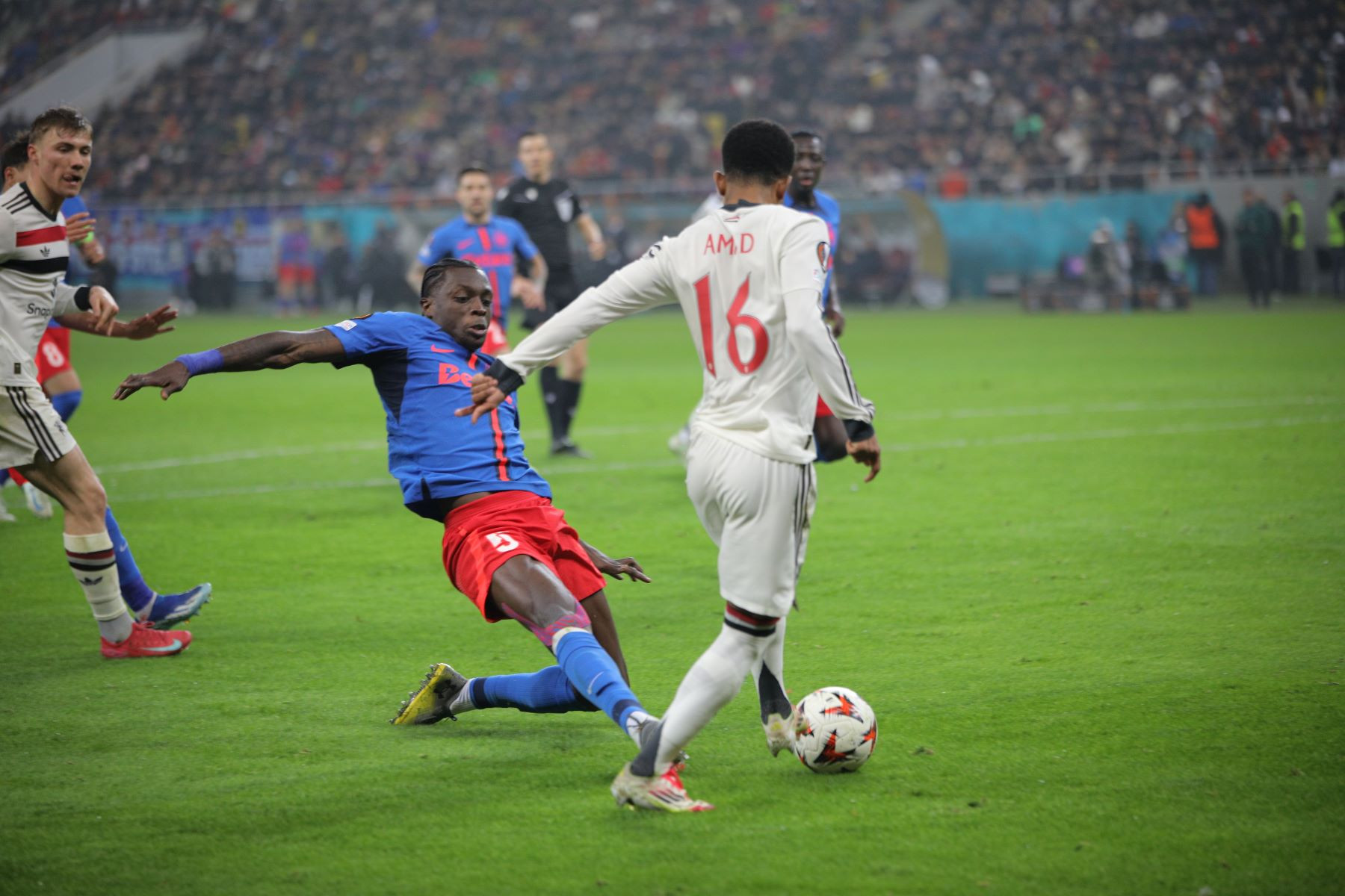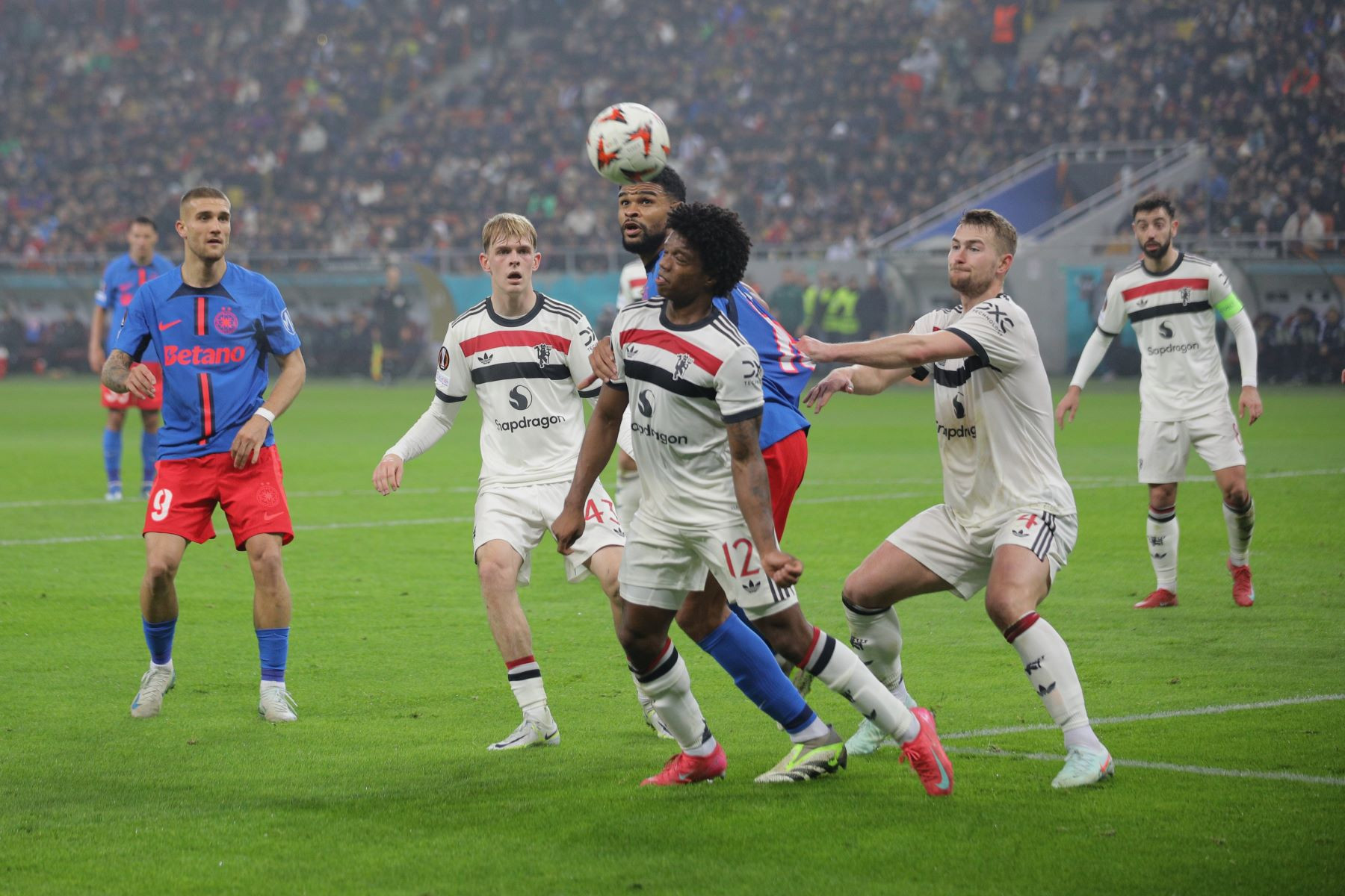 Meciul a fost punctat și de incidente hilare, în care trei tineri fani români ai lui United au intrat pe gazon. Primul a apucat să-și facă poză cu Alejandro Garnacho, al doilea a dat mâna cu Matthijs de Ligt, iar al treilea a alunecat pe iarba umedă și a fost transportat de stewarzi în afara arenei.