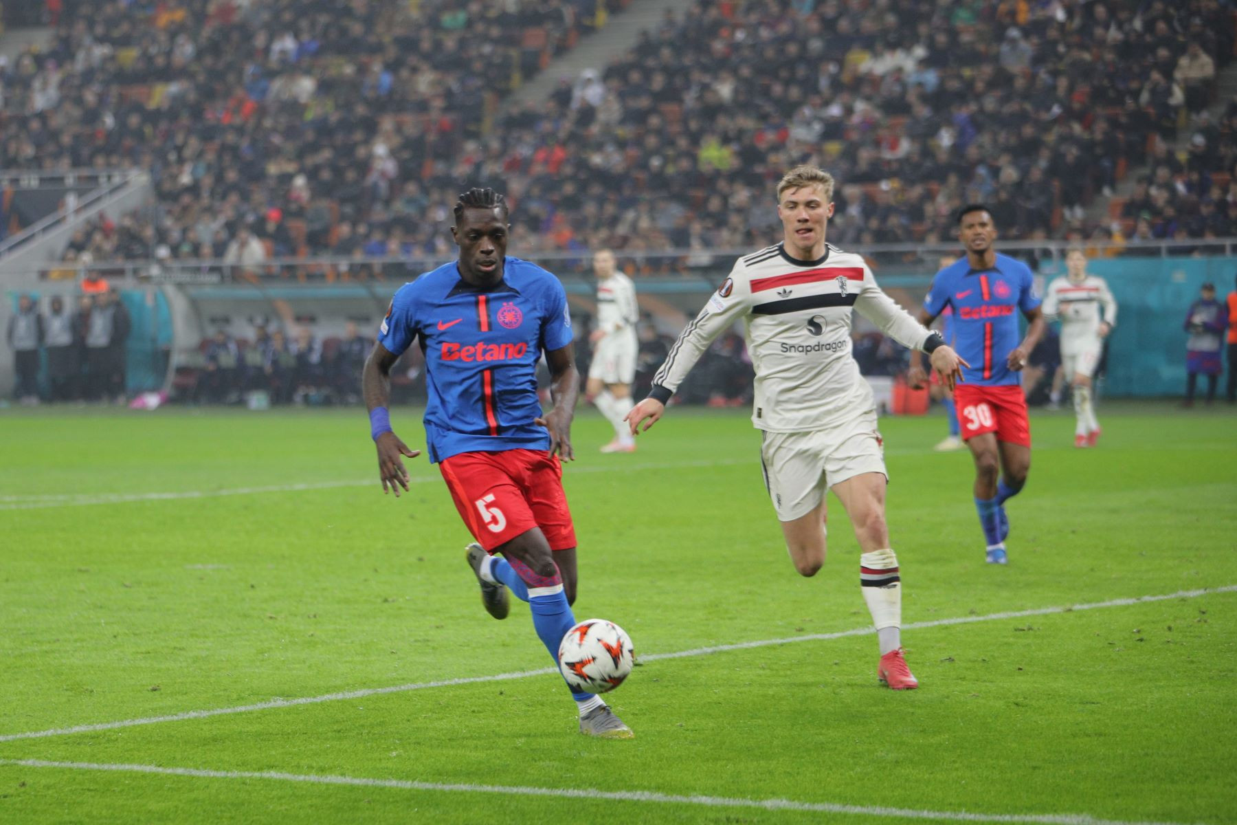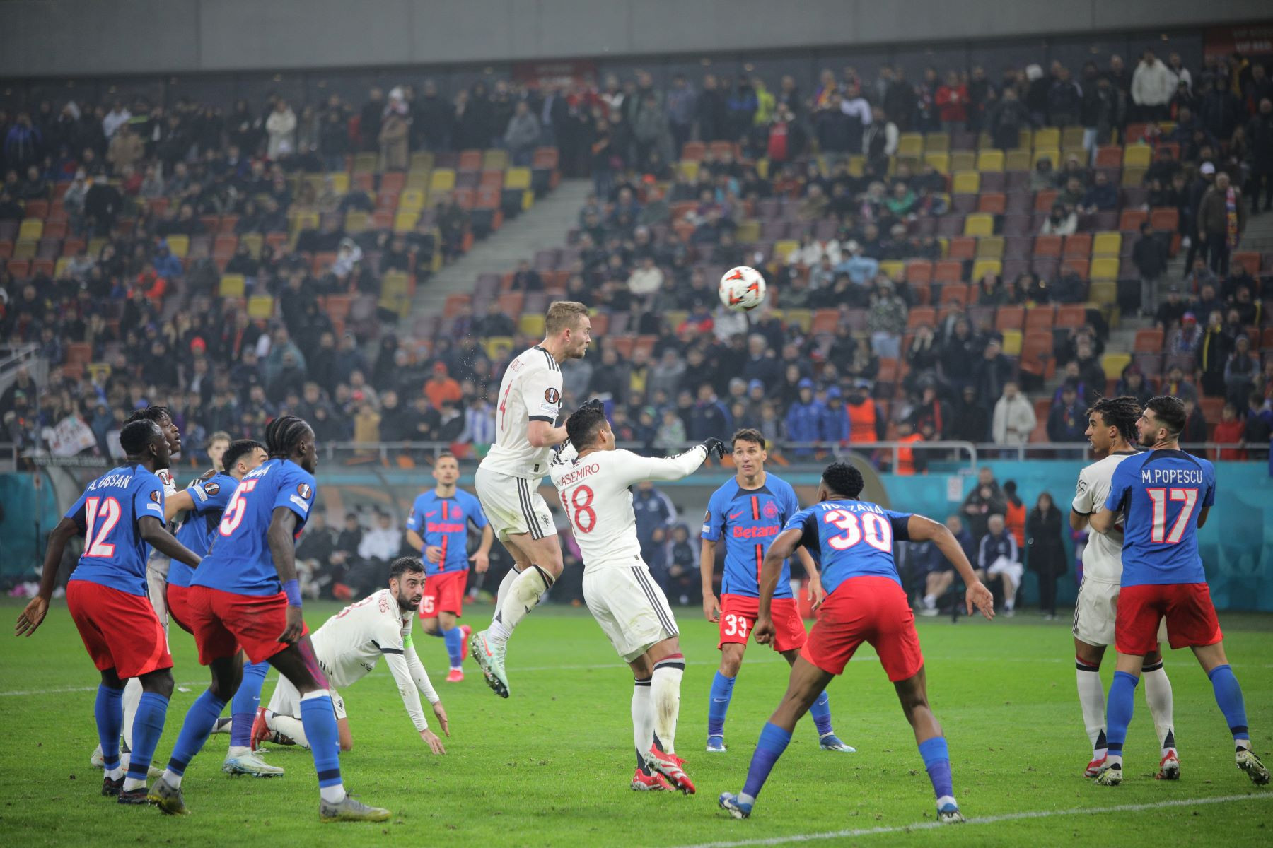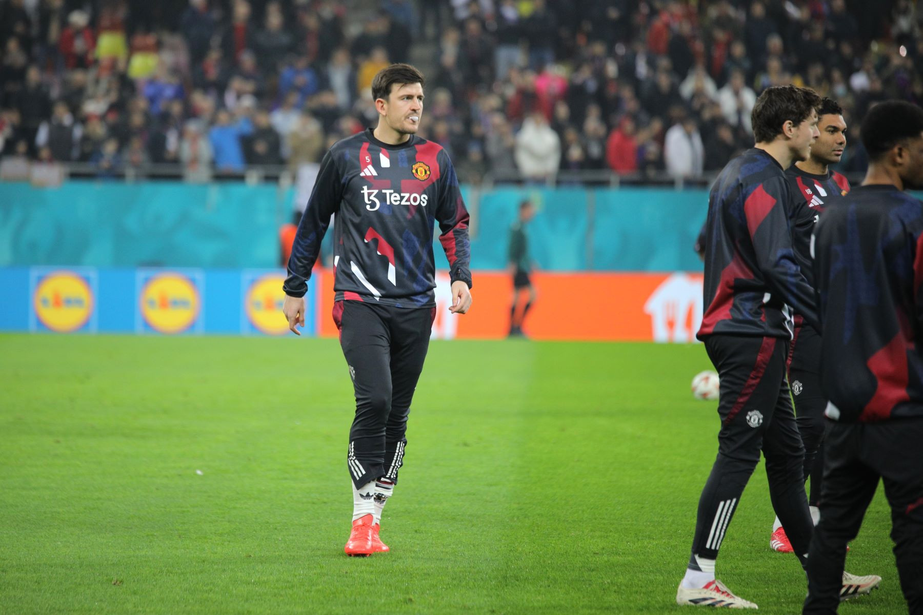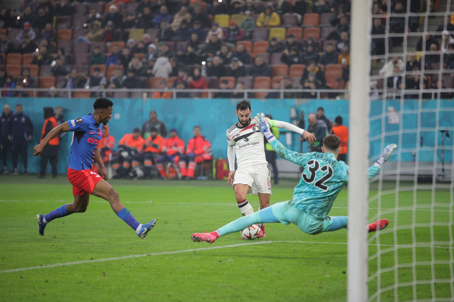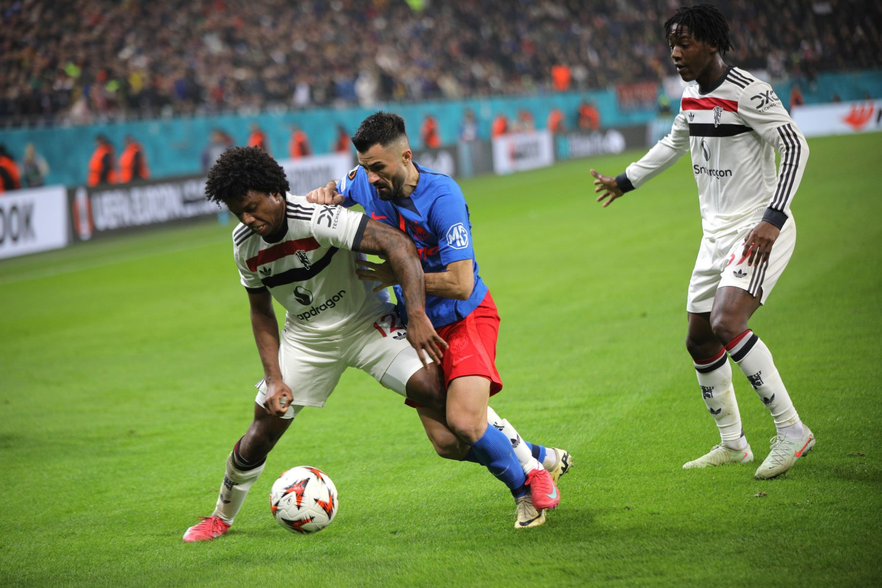 Meciul a fost punctat și de incidente hilare, în care trei tineri fani români ai lui United au intrat pe gazon. Primul a apucat să-și facă poză cu Alejandro Garnacho, al doilea a dat mâna cu Matthijs de Ligt, iar al treilea a alunecat pe iarba umedă și a fost transportat de stewarzi în afara arenei.
