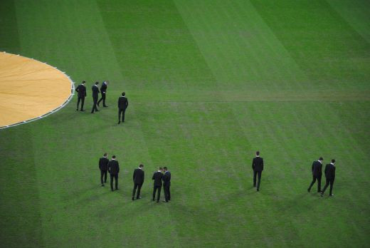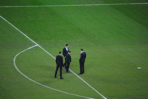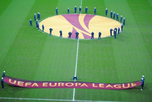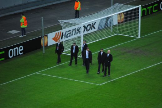 18.20 Suporterii incep sa isi faca aparitia pe stadion. Au aparut si primele steaguri in peluze iar oficialii UEFA au iesit sa inspecteze gazonul.
