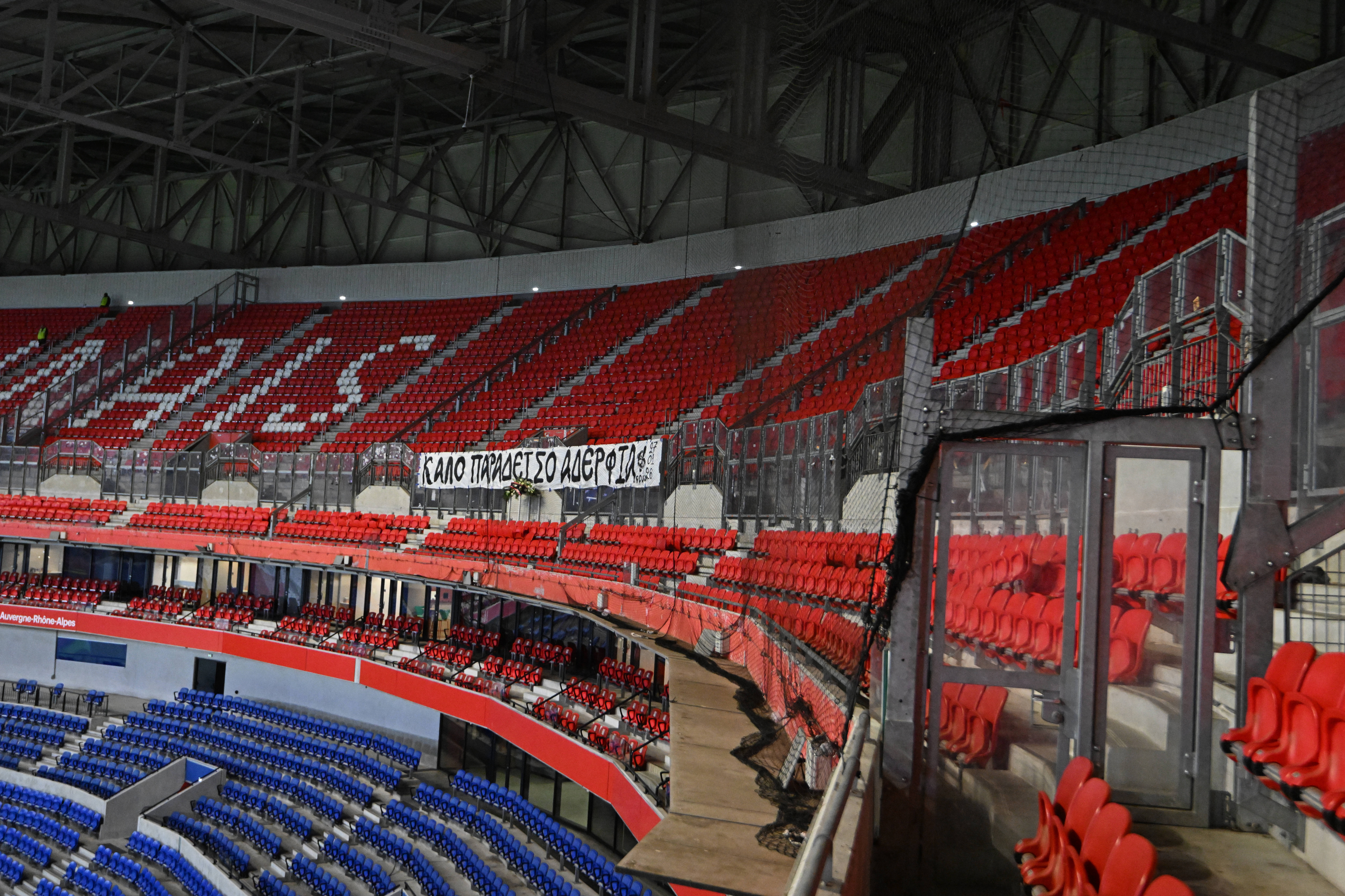 Sectorul dedicat suporterilor lui PAOK Salonic a rămas gol pentru meciul din această seară. Acolo a fost pus un banner în limba greacă: "Drum bun, frații noștri".