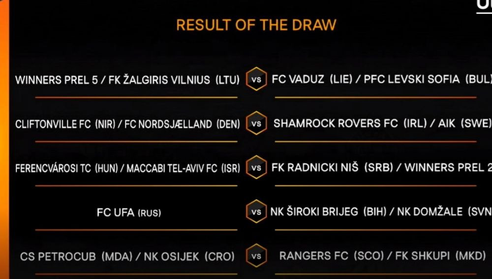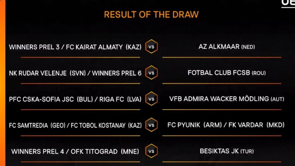 UPDATE: FCSB va juca impotriva castigatoarei dintre Rudar Velenje din Slovenia si castigatoarea partidei preliminare cu numarul 6. FCSB va juca primul meci in deplasare, pe 26 iulie, si returul acasa, pe 2 august.