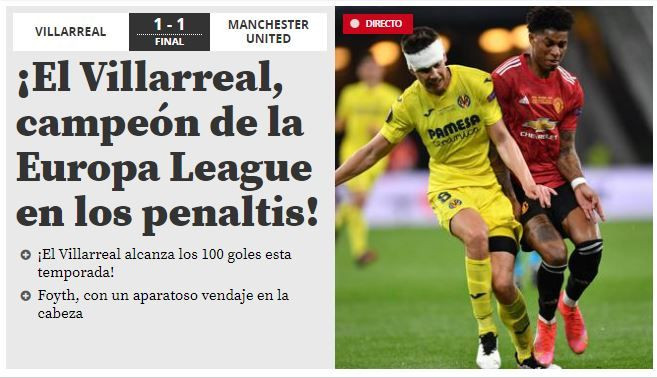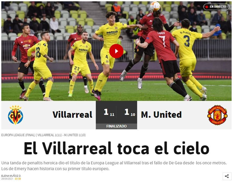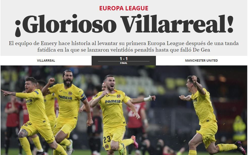 Cei de la Mundo Deportivo au scris ca Villarreal a iesit glorioasa din duelul cu Manchester United, punctand ca acesta este primul trofeu european cucerit de echipa din Spania.