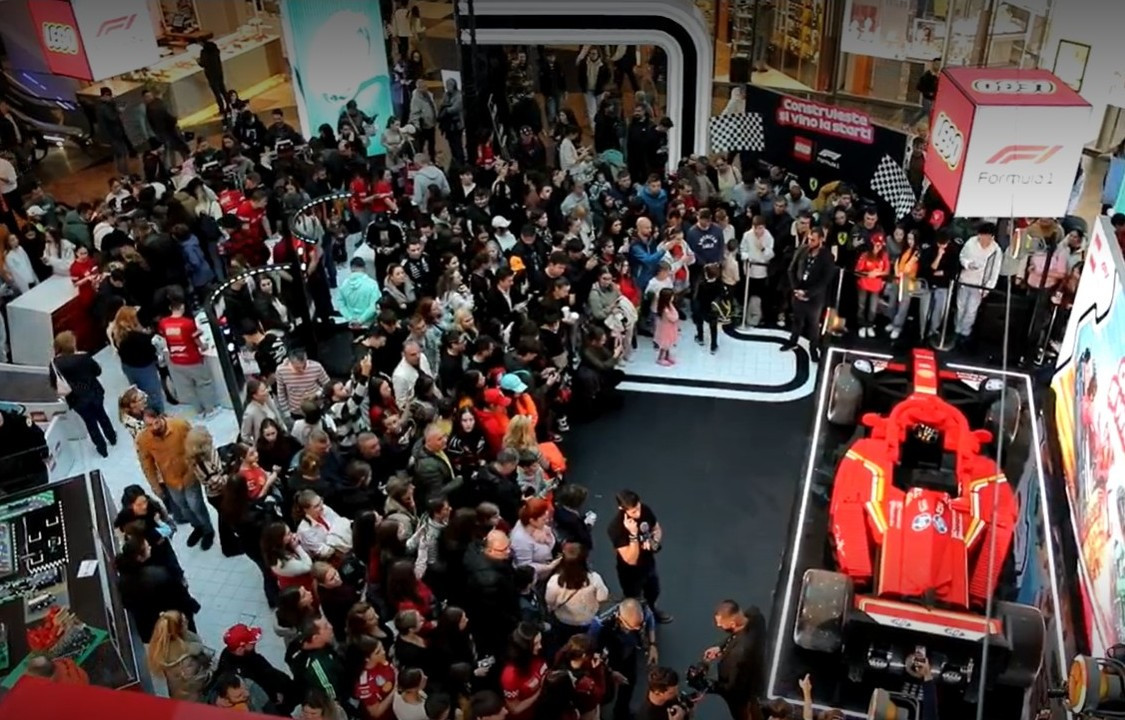 În Băneasa Shopping City a fost expusă replica unui bolid Ferrari construită din piese Lego, care a fost condusă de Lewis Hamilton, septuplul campion mondial de Formula 1, într-o cursă demonstrativă la Miami Grand Prix, în mai 2025. Andreea Spiridon, marketing director al Lego România, a explicat de ce este specială această mașină.