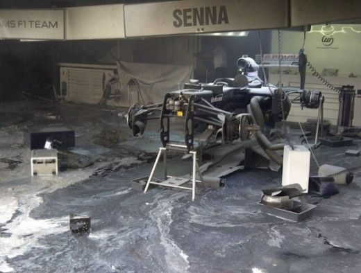 Atat a mai ramas din masina pilotului Bruno Senna. La finalul cursei de la Barcelona la boxele celor de la Williams a avut loc o explozie distrugand tot ce se afla in garaj. Bolidul de 2 milioane de dolari s-a facut scrum.