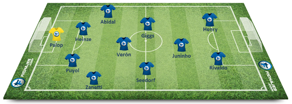 Andres Palop - Zanetti, Puyol, Heinze, Abidal - Veron, Seedorf, Giggs, Juninho - Rivaldo, Henry