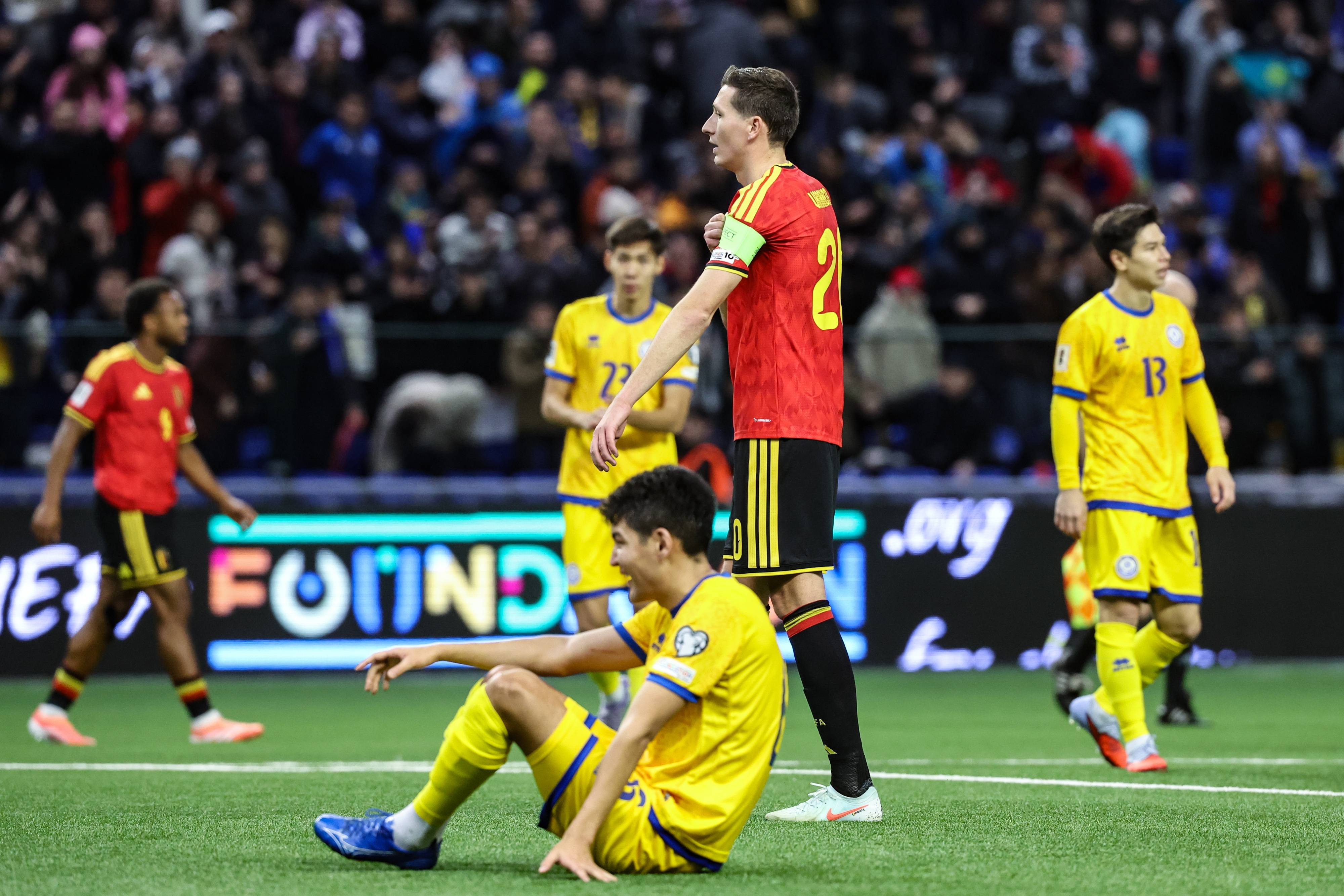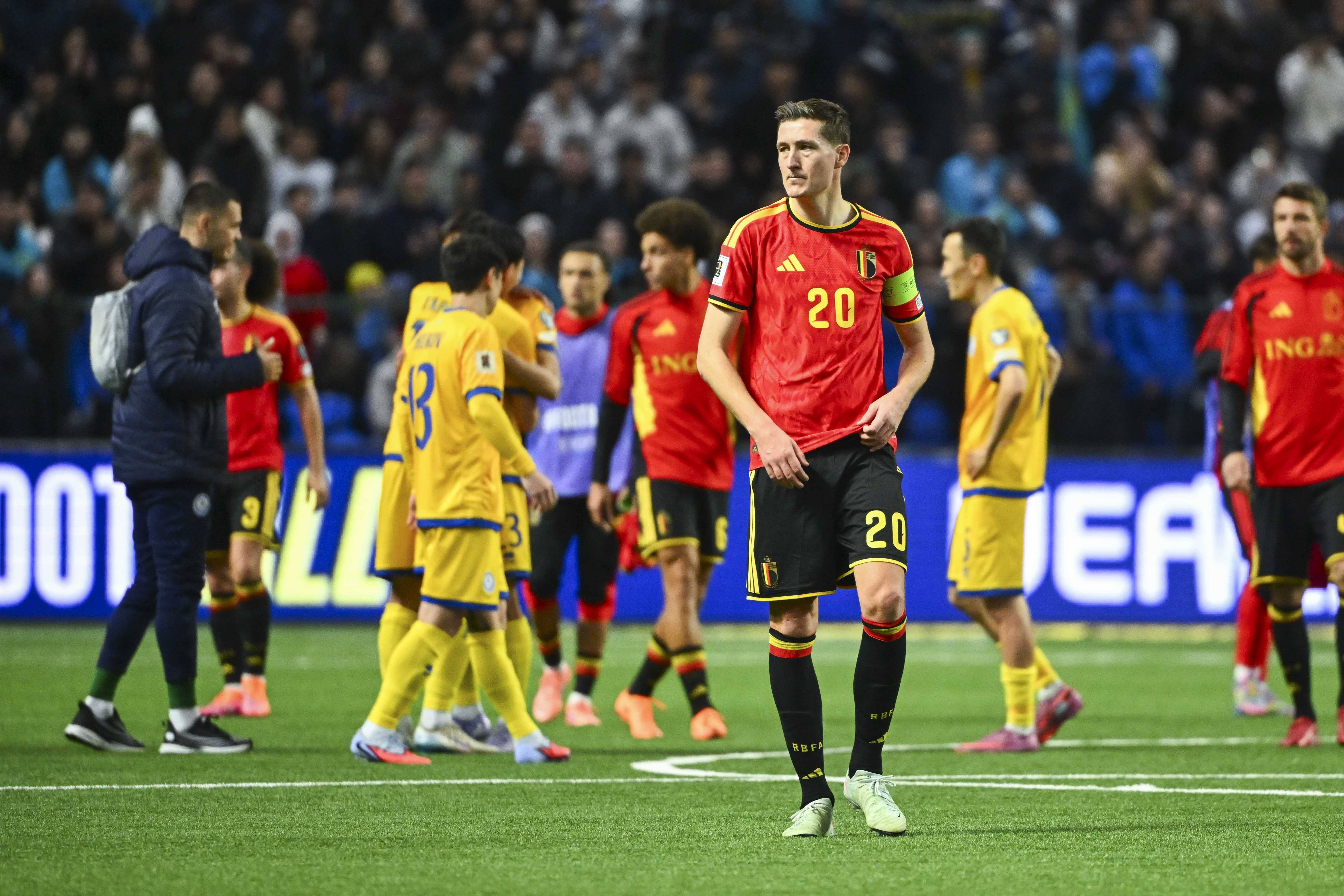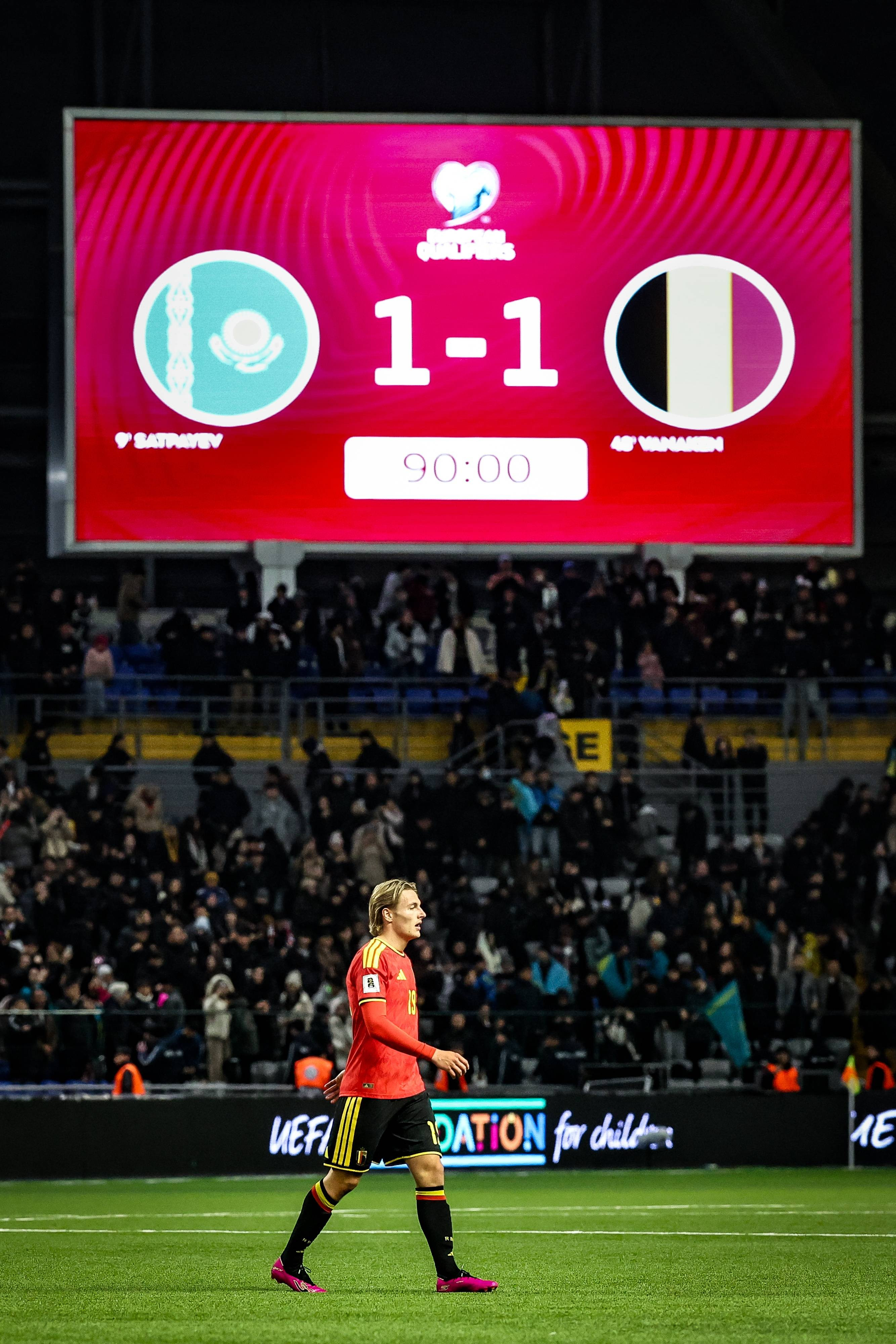 În partea secundă, Hans Vanaken a egalat chiar din minutul 48, kazahii au rămas în zece din minutul 79, după eliminarea lui Islam Chesnokov, însă Kazahstan – Belgia a fost 1-1, iar belgienii trebuie să aştepte ultima etapă pentru a bifa calificarea matematică la Cupa Mondială 2026.
