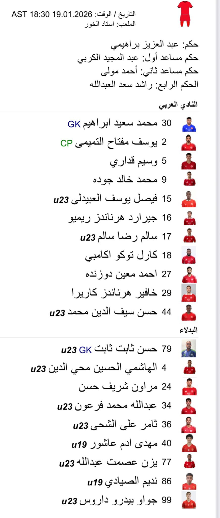 Fix asta s-a întâmplat și în confruntarea Al-Arabi – Al-Sadd de luni seara. Aici, Al-Arabi, unde Contra pregătește prima echipă, și-a trimis formația a doua pe teren, pregătită de un alt antrenor! De altfel, în lot s-au aflat 11 fotbaliști de la Al-Arabi U19 și U23, după cum se poate vedea mai jos: