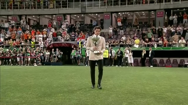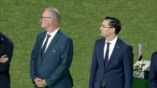 La ceremonia de premiere a participat și Răzvan Burleanu. Președintele FRF a fost însoțit pe teren, pe lângă oficialii UEFA, de Sergio Merchan Guay, vicepreședintele Federației Spaniole de Fotbal și Nigel de Jong, directorul tehnic al Federației Olandeze.