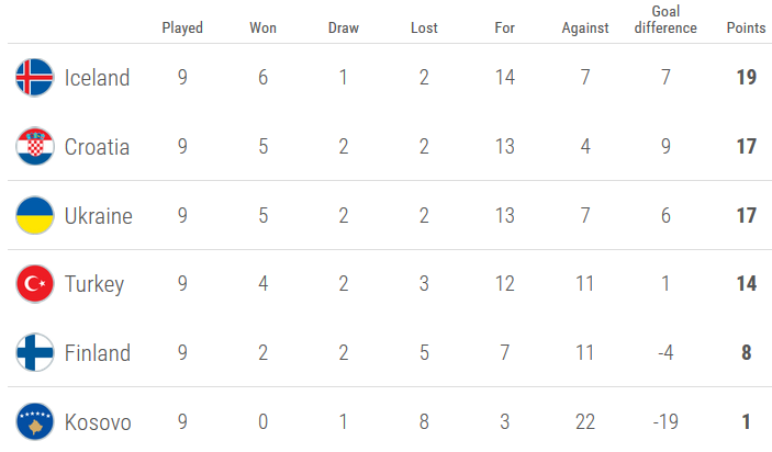 Va fi o lupta in trei, pentru doua locuri. Islanda, Croatia si Ucraina sunt despartite de un singur punct.