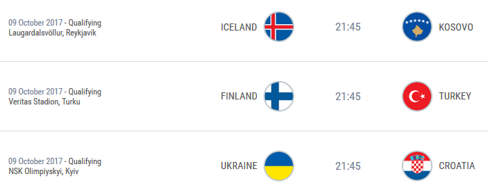 In ultima etapa, Islanda are meci usor cu Kosovo, Turcia merge in Finlanda, iar Ucraina joaca acasa cu Croatia.