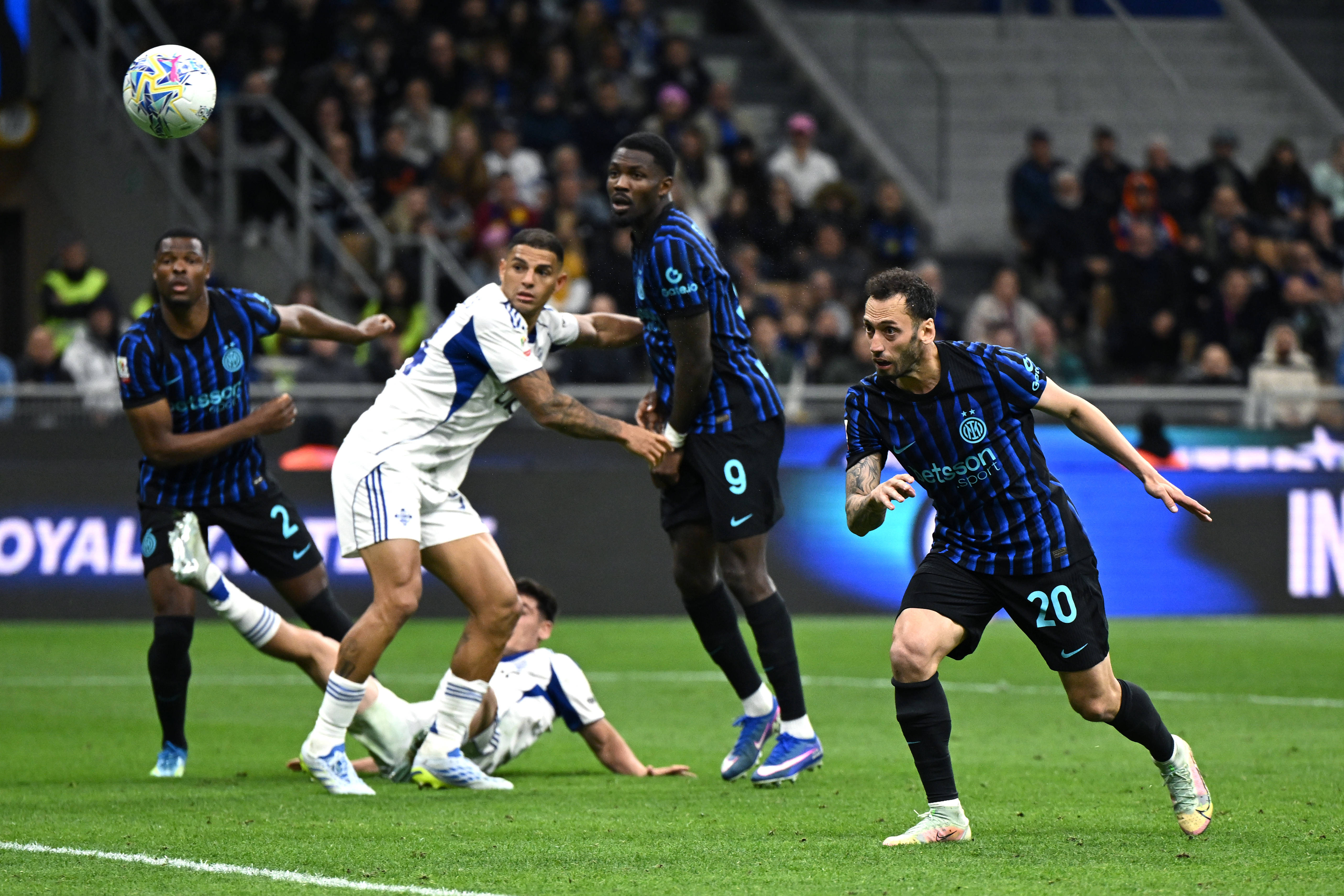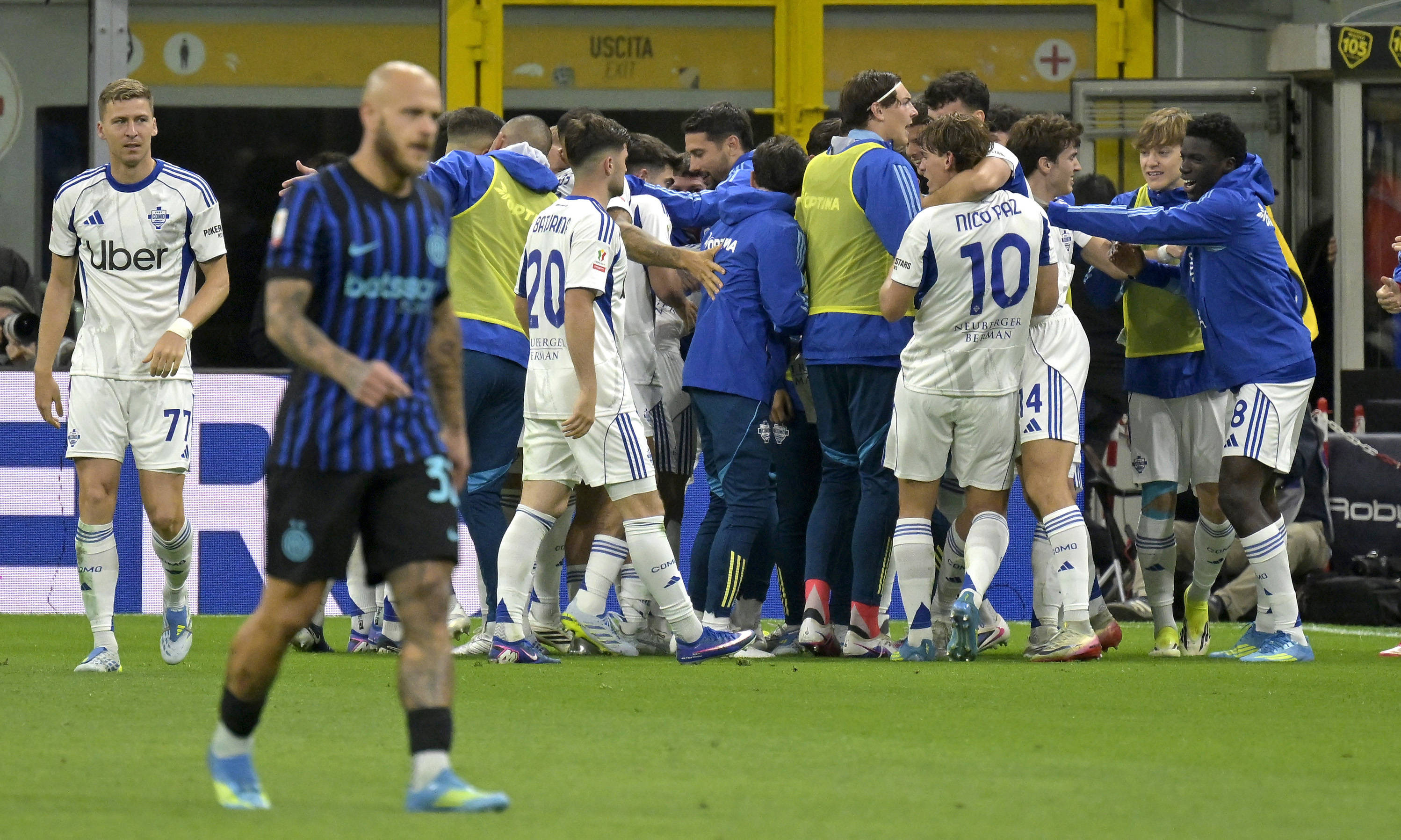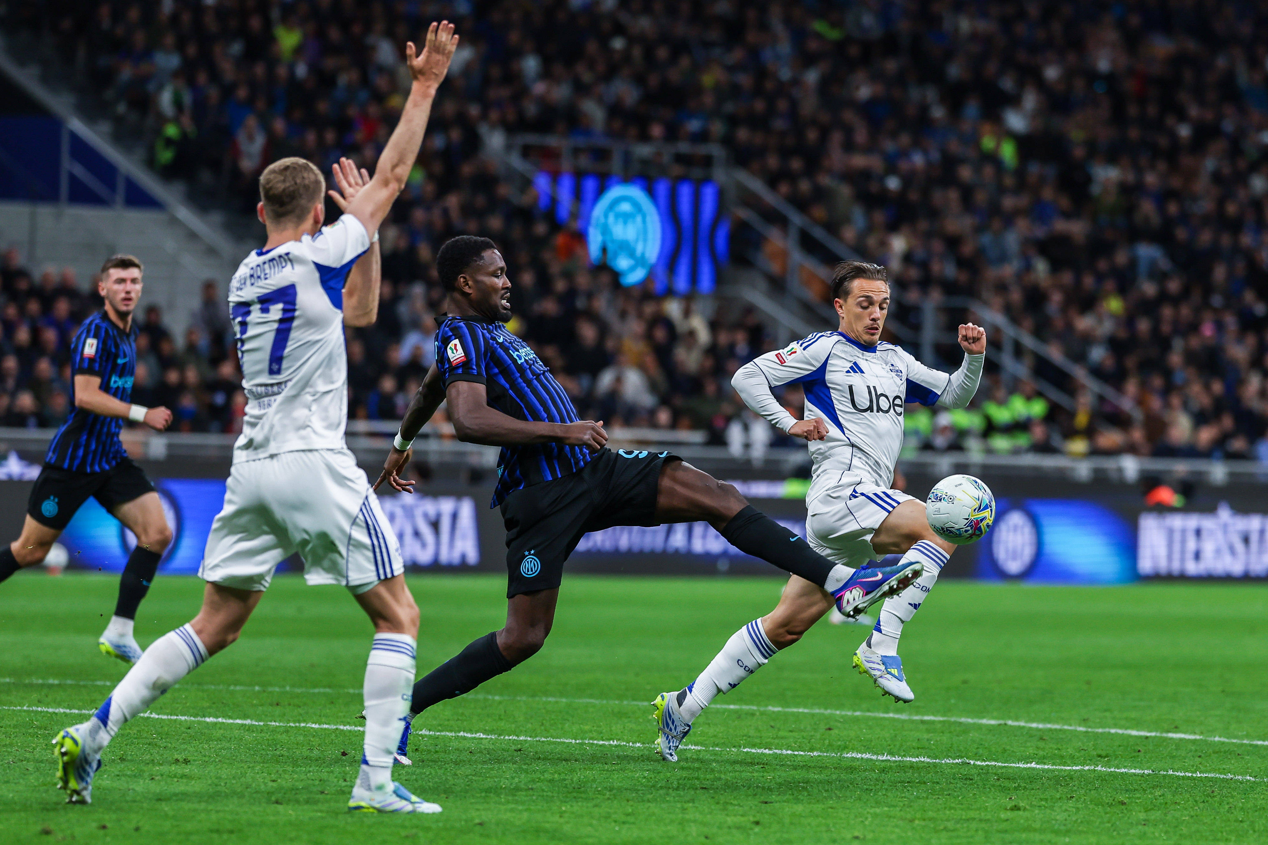 După o primă parte modestă de meci, Inter a pus stăpânire treptat pe joc și a marcat de trei ori în 20 de minute, reușind o revenire spectaculoasă, așa cum s-a întâmplat în meciul cu Como din campionat, câștigat cu 4-3 după ce echipa lui Fabregas a condus tot cu 2-0.