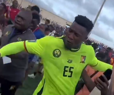 Cu o expresie iritată, camerunezul l-a lovit cu dosul mâinii pe bărbatul care se apropiase prea mult. Faza a fost filmată și a stârnit un val de reacții pe rețelele de socializare.