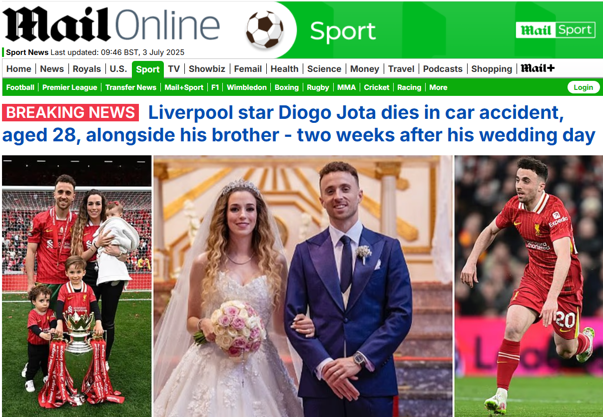 Nenorocirea este cu atât mai mare cu cât Diogo Jota se căsătorise în urmă cu doar două săptămâni cu Rute Cardoso, iubita sa din adolescență și mama celor trei copii ai săi. În ultima sa postare pe Instagram, fotbalistul distribuise imagini de la nuntă, descriindu-se drept "cel mai norocos bărbat din lume".