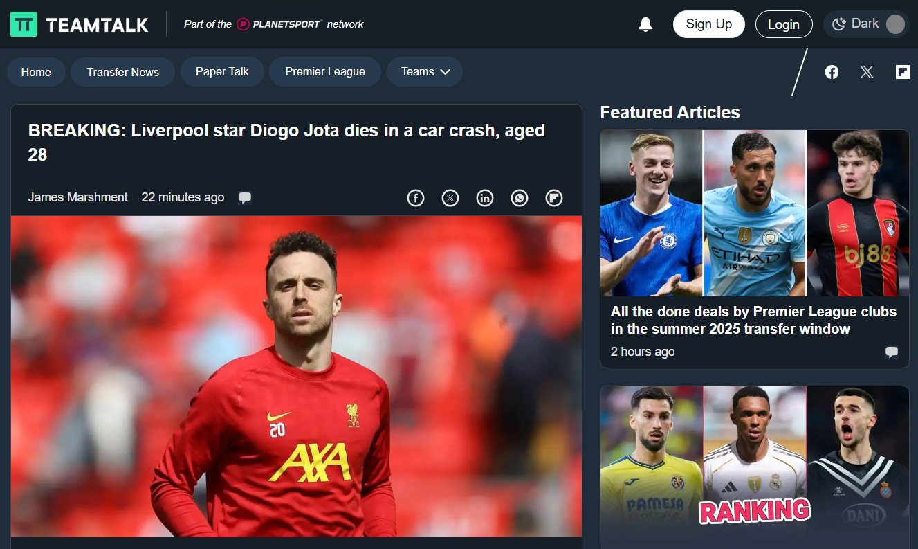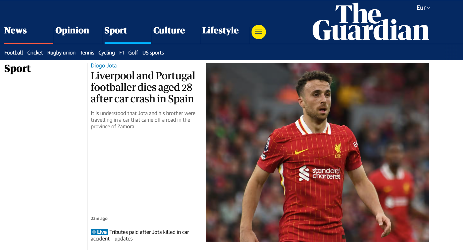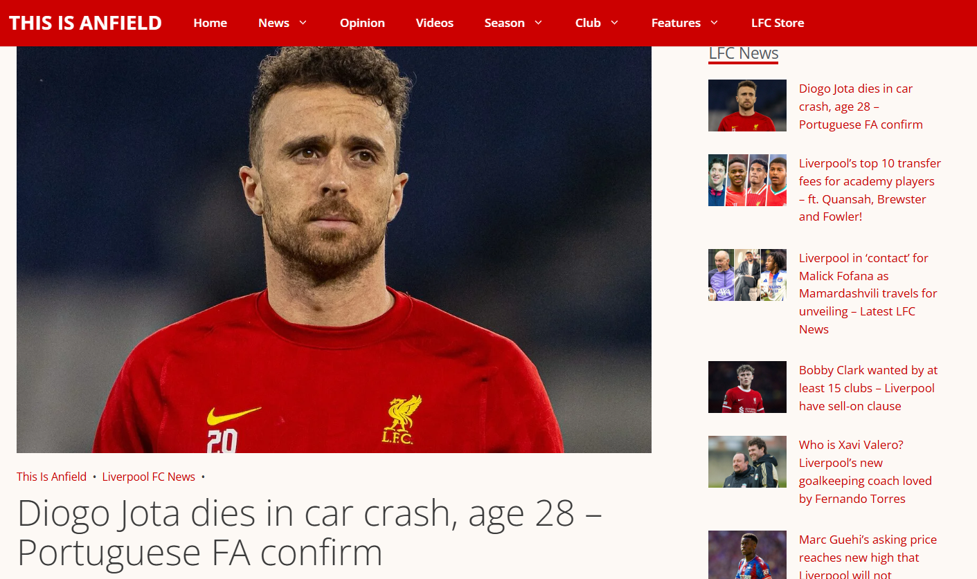 Alături de Jota, în mașină se afla și fratele său mai mic, Andre, în vârstă de 26 de ani, care și-a pierdut și el viața. Cei doi se aflau în bolidul de lux când, din primele informații, o anvelopă ar fi explodat în timpul unei depășiri pe autostrada A-52, în apropiere de granița cu Portugalia.