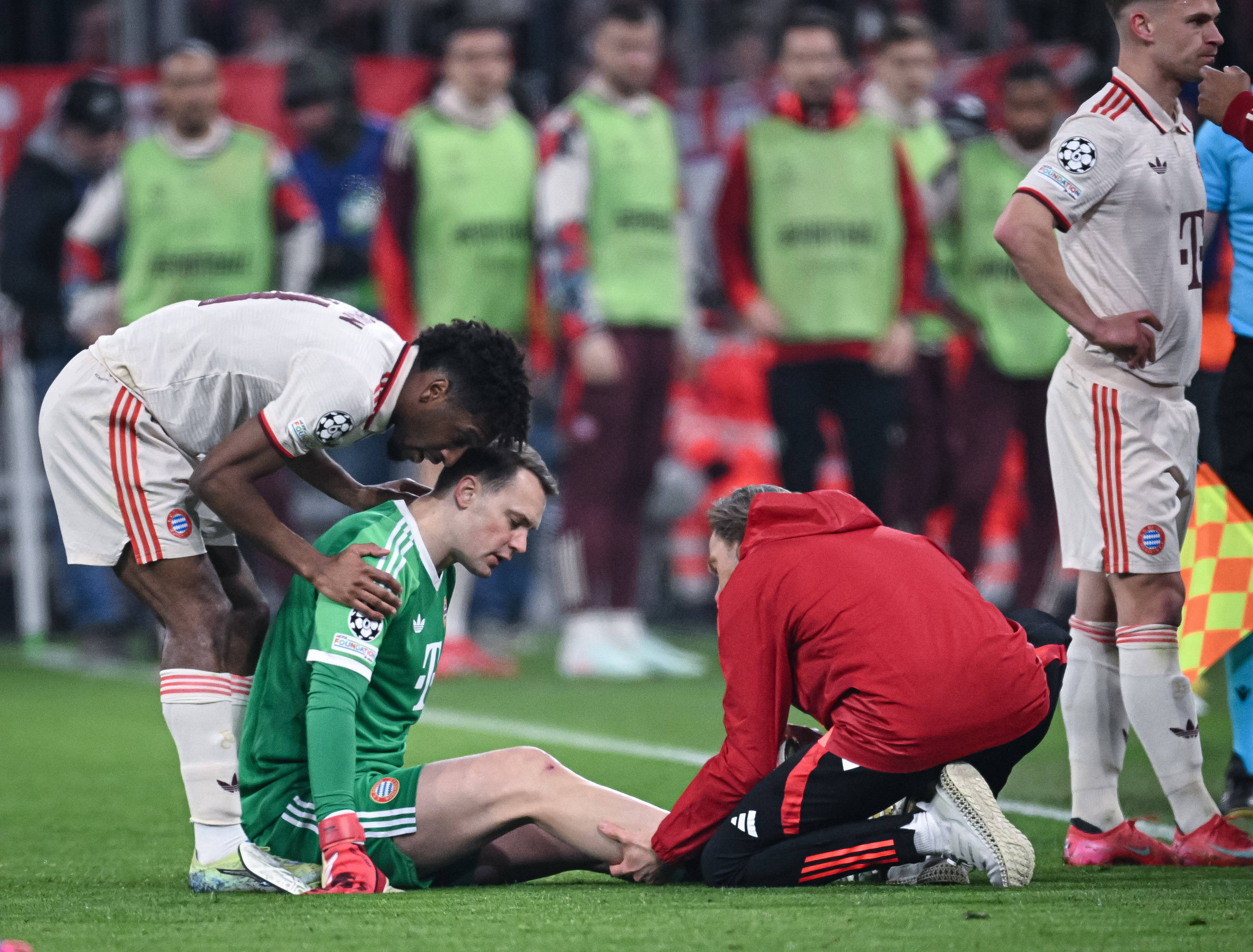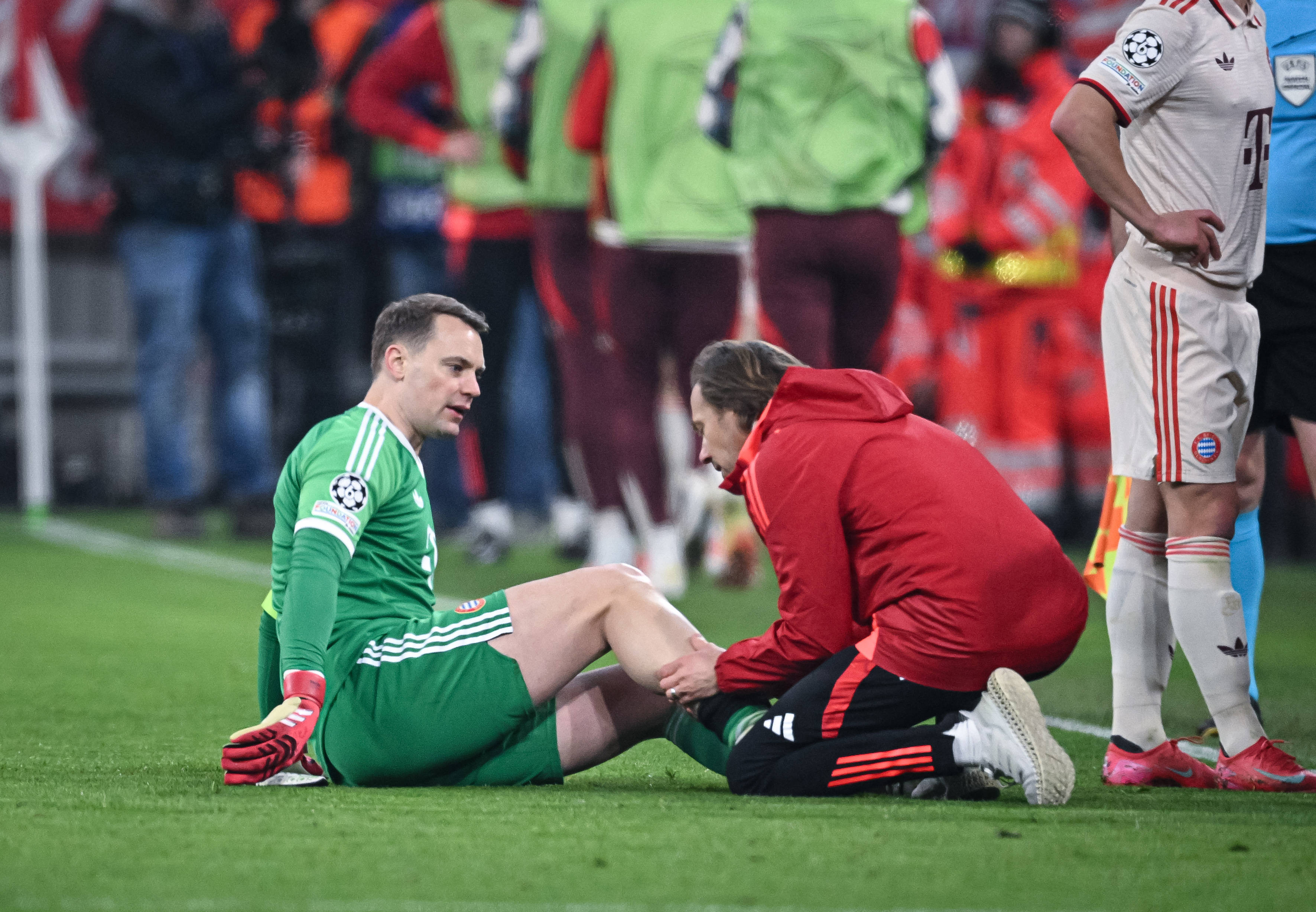 Manuel Neuer (38 de ani), care sărbătorea a 150-a participare în Liga Campionilor, s-a accidentat la piciorul drept, miercuri, în timpul victoriei cu 3-0 a echipei Bayern Munchen în faţa celor de la Bayer Leverkusen, în prima manşă a optimilor Ligii Campionilor.