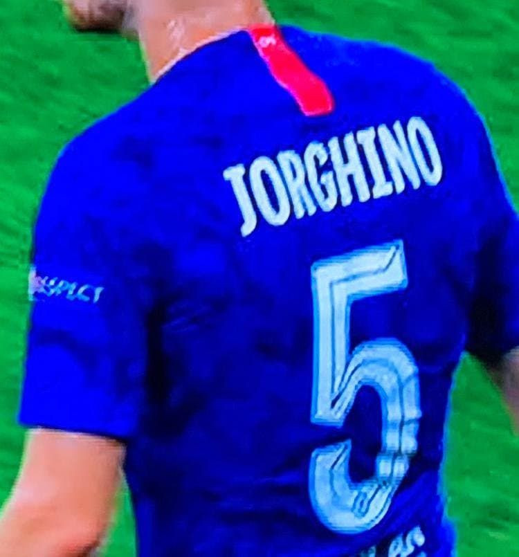 Jorginho, mijlocasul lui Chelsea, a jucat in prima repriza cu un tricou pe care i s-a inscriptionat numele gresit. Jorghino i-au scris cei de la Chelsea pe spate.