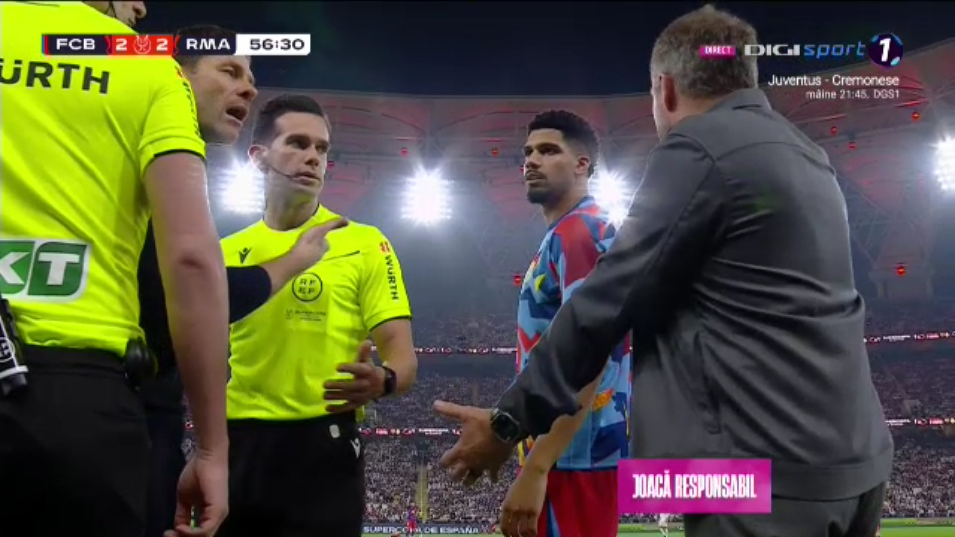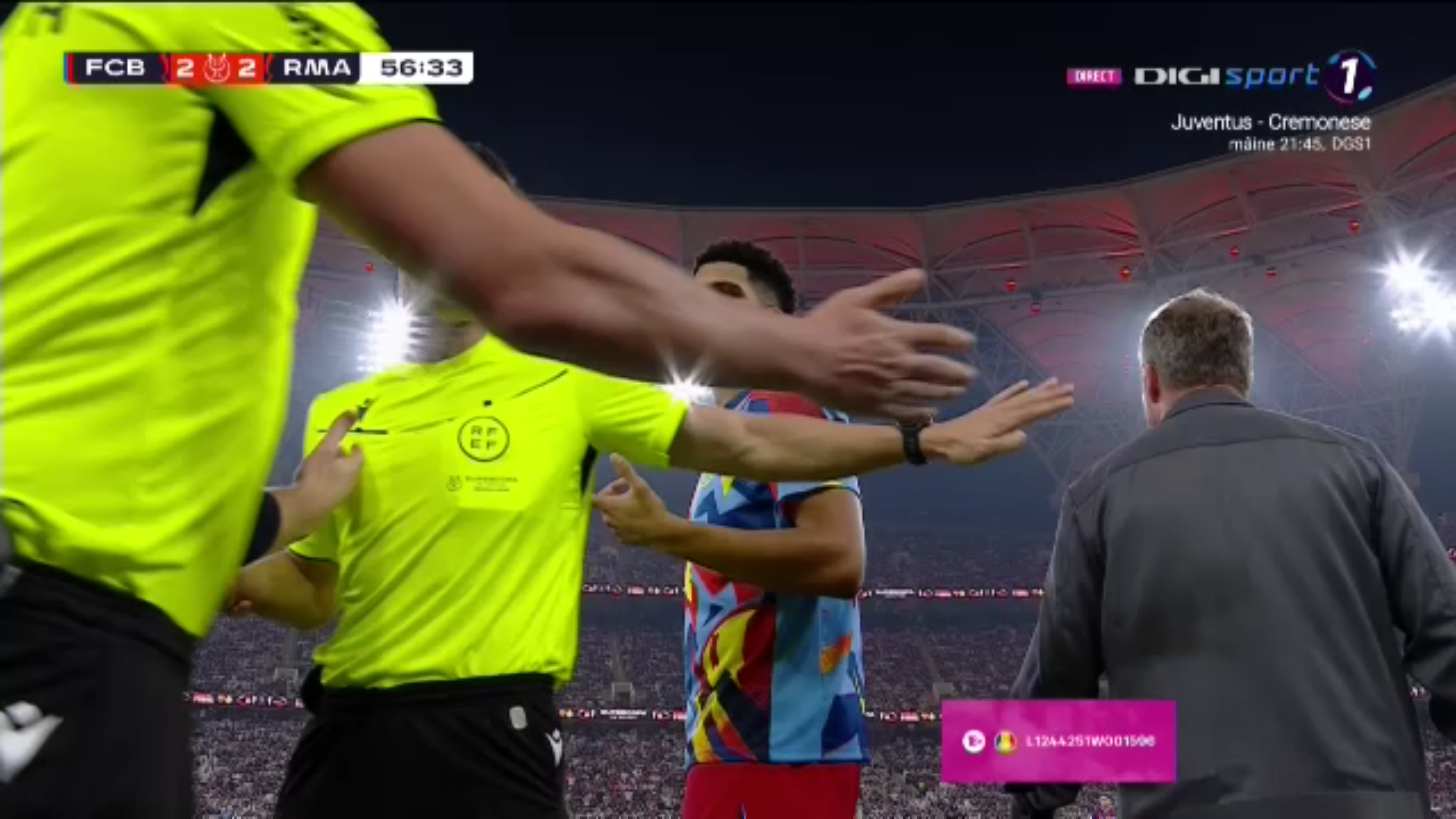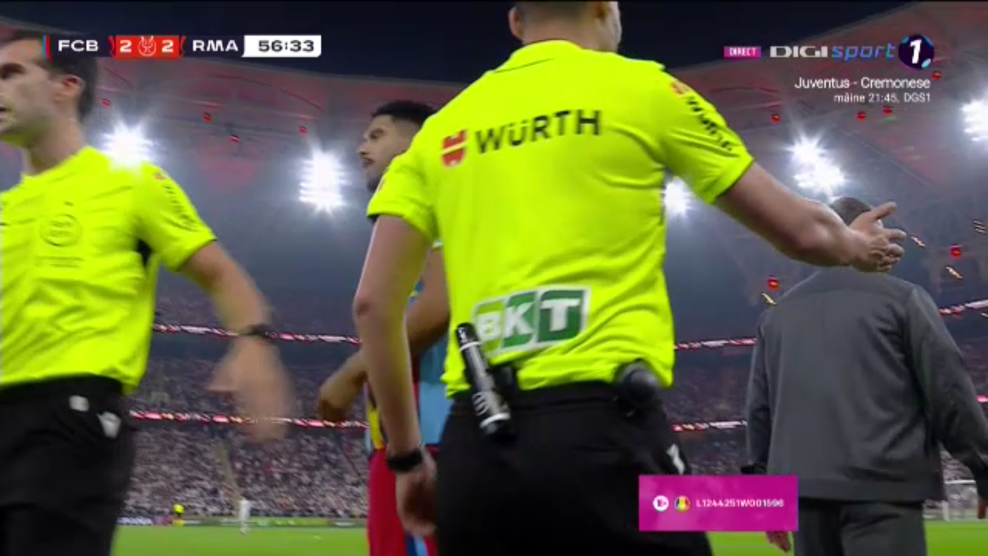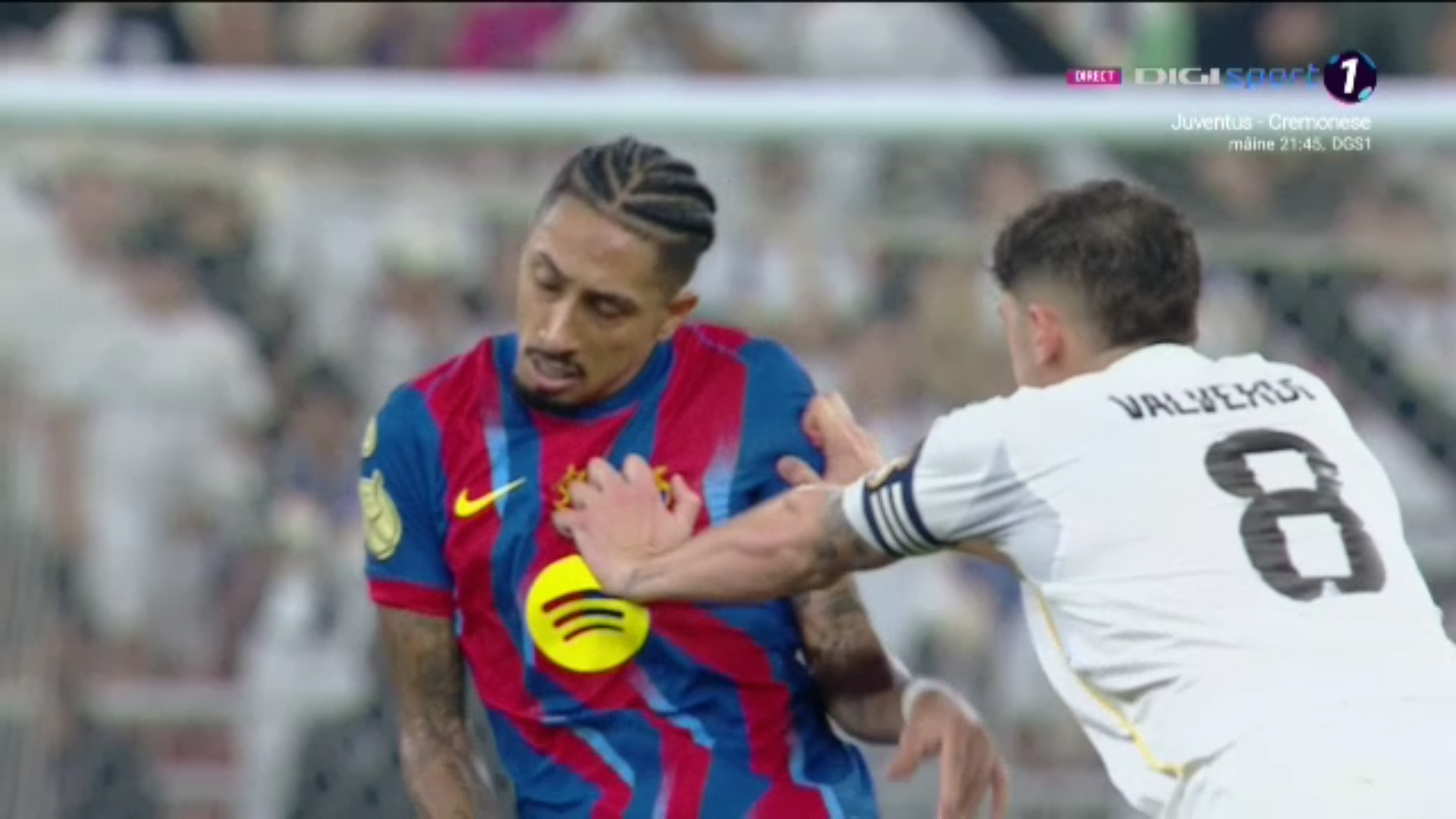 Eric Garcia l-a împins pe Asencio, dar Federico Valverde l-a oprit pe jucătorul Barcelonei, moment în care Raphinha a apărut și l-a împins și el pe căpitanul lui Real Madrid, care i-a răspuns tot cu o împingere.