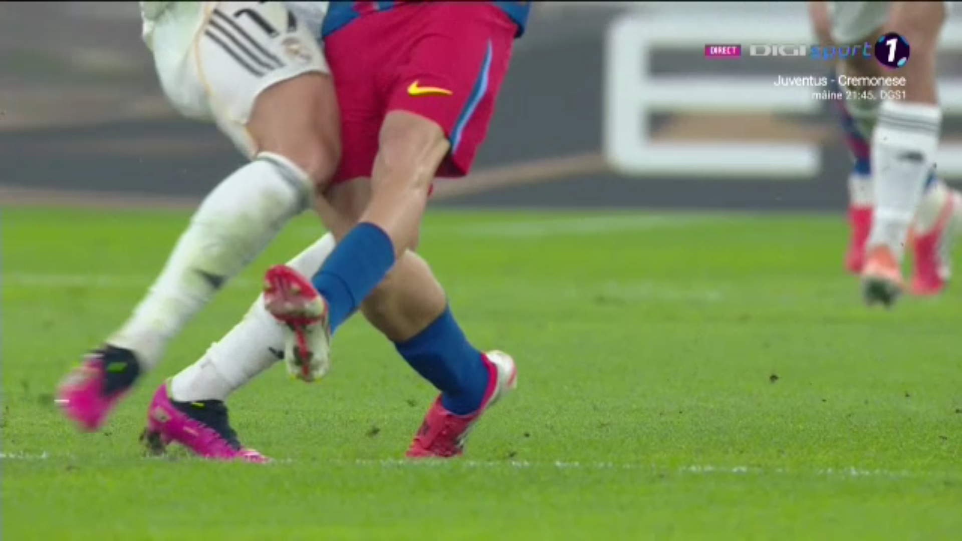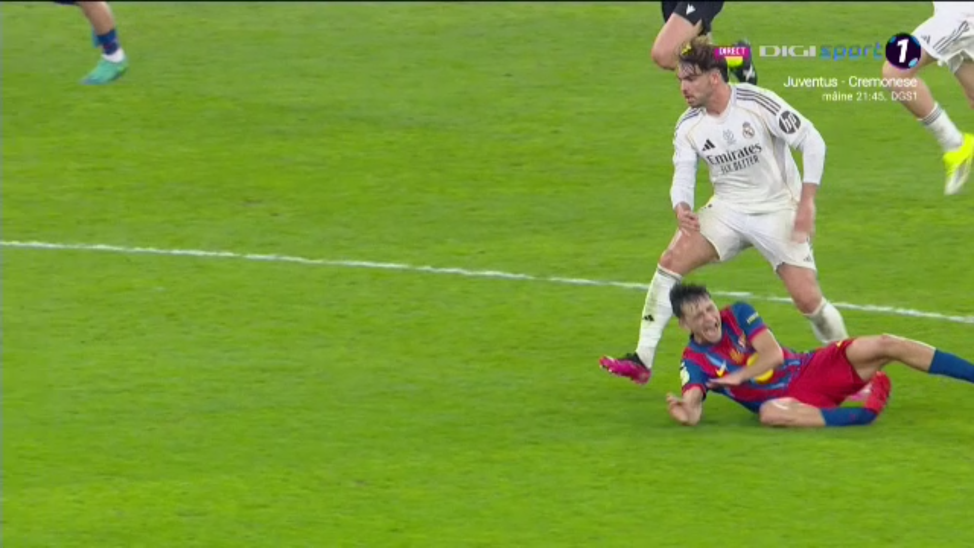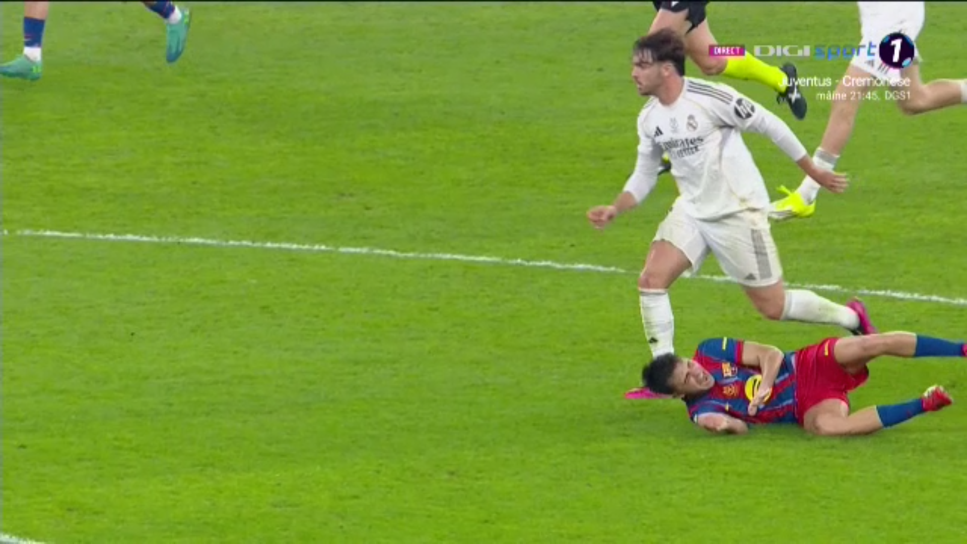 În minutul 58, Raul Asencio a încercat să oprească un atac al Barcelonei și a avut o intervenție dură asupra lui Pedri. Asencio a încercat să lovească mingea, dar l-a lovit în talpă pe mijlocașul Barcelonei, care s-a prăbușit pe gazon.