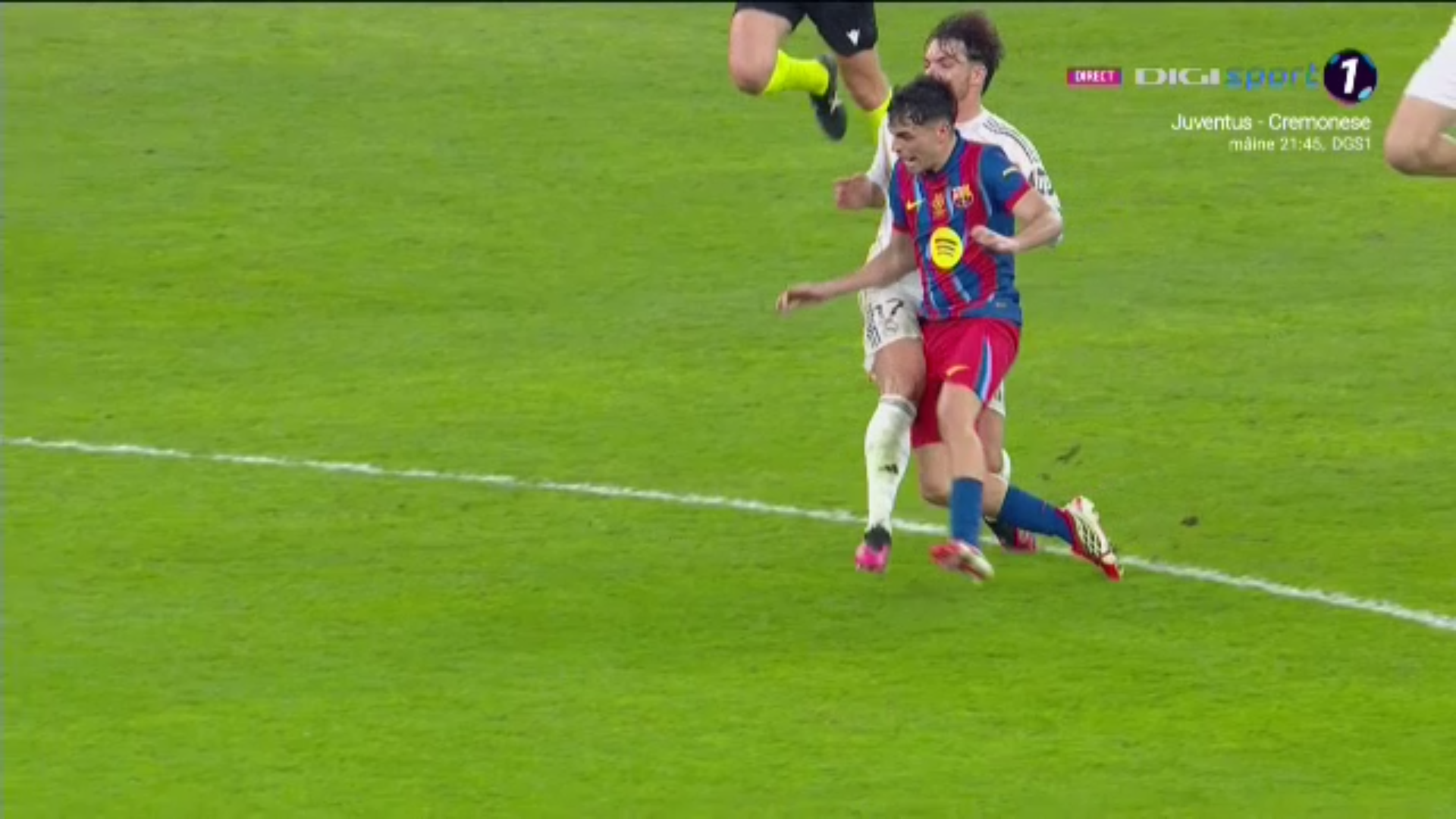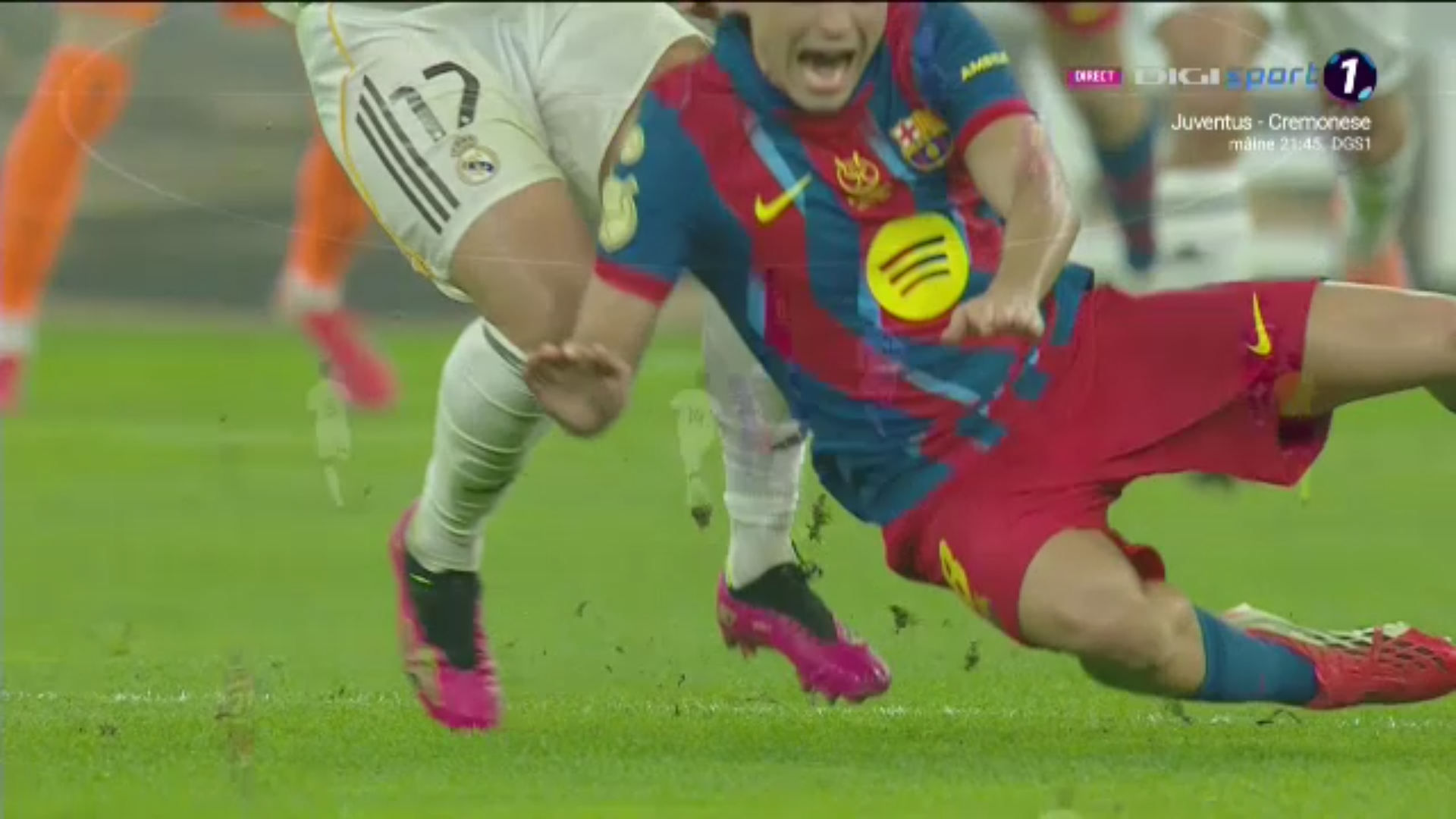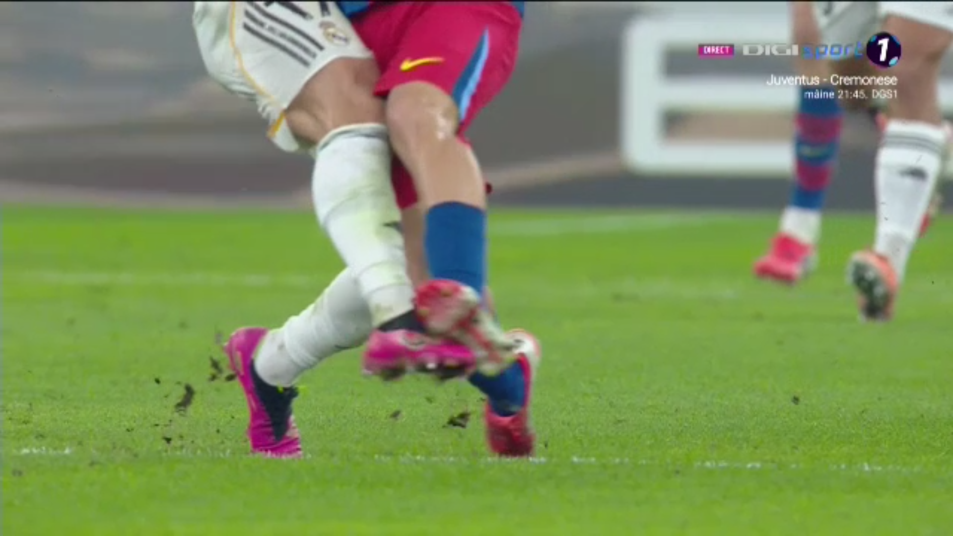 În minutul 58, Raul Asencio a încercat să oprească un atac al Barcelonei și a avut o intervenție dură asupra lui Pedri. Asencio a încercat să lovească mingea, dar l-a lovit în talpă pe mijlocașul Barcelonei, care s-a prăbușit pe gazon.