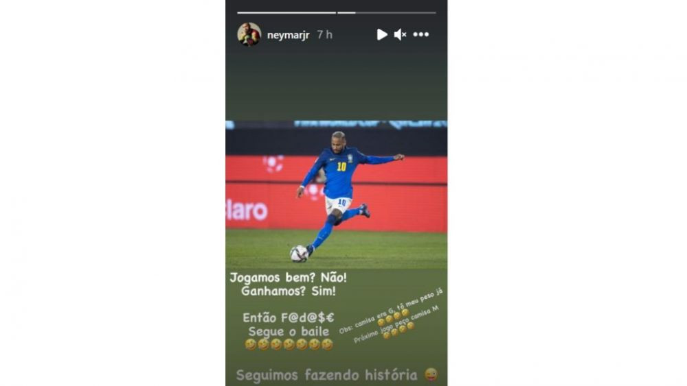 „Tricoul era mărimea L. Sunt deja în cea mai bună formă a mea. La următorul meci voi purta M”, a scris Neymar.