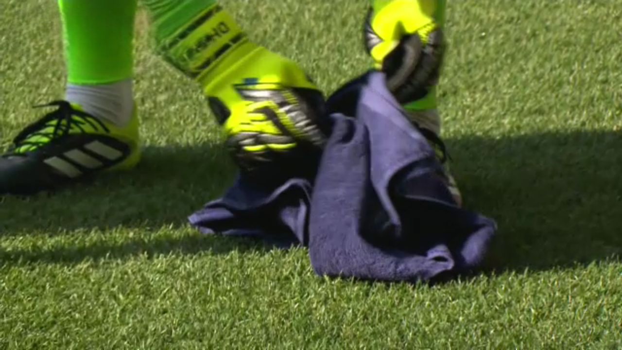 Portarul lui Crystal Palace avea fițuica lipită pe o sticlă de apă acoperită cu un prosop și aflată la câțiva metri de poartă.