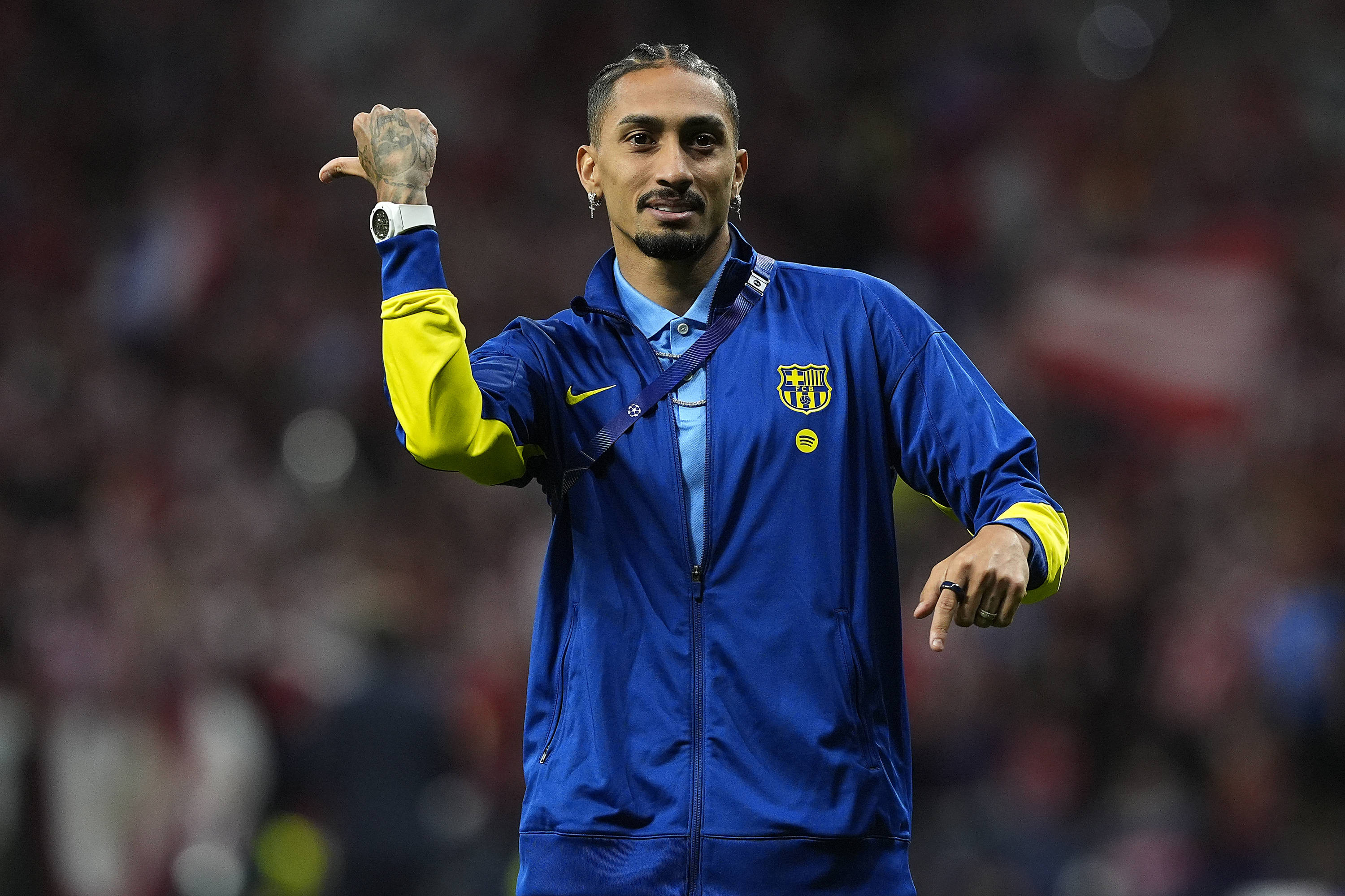În finalul partidei de pe „Wanda Metropolitano”, Raphinha a făcut un gest către o zonă în care se aflau mai mulți fani ai lui Atletico Madrid. Brazilianul le-a transmis că echipa lor favorită va fi eliminată oricum în următoarea rundă.