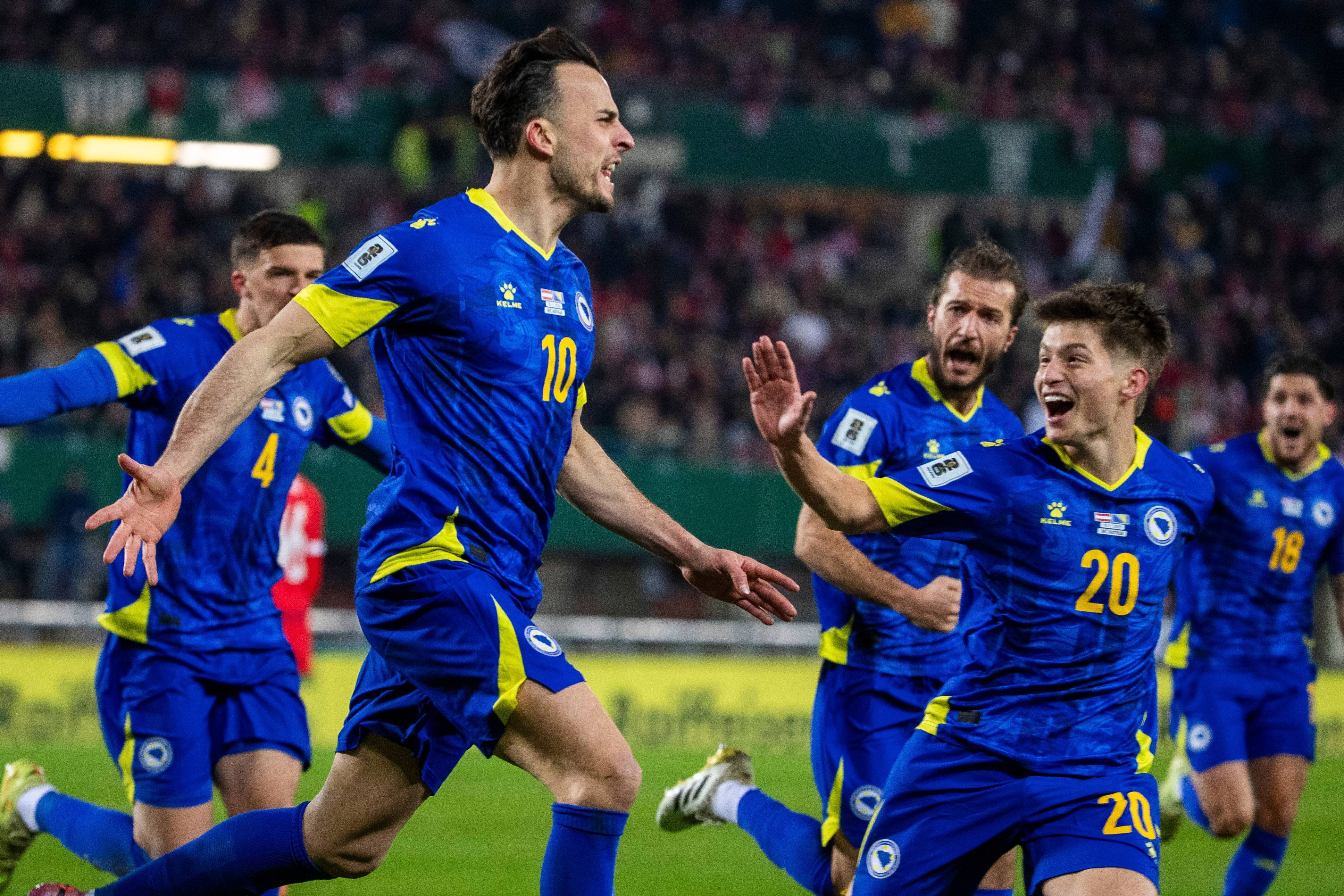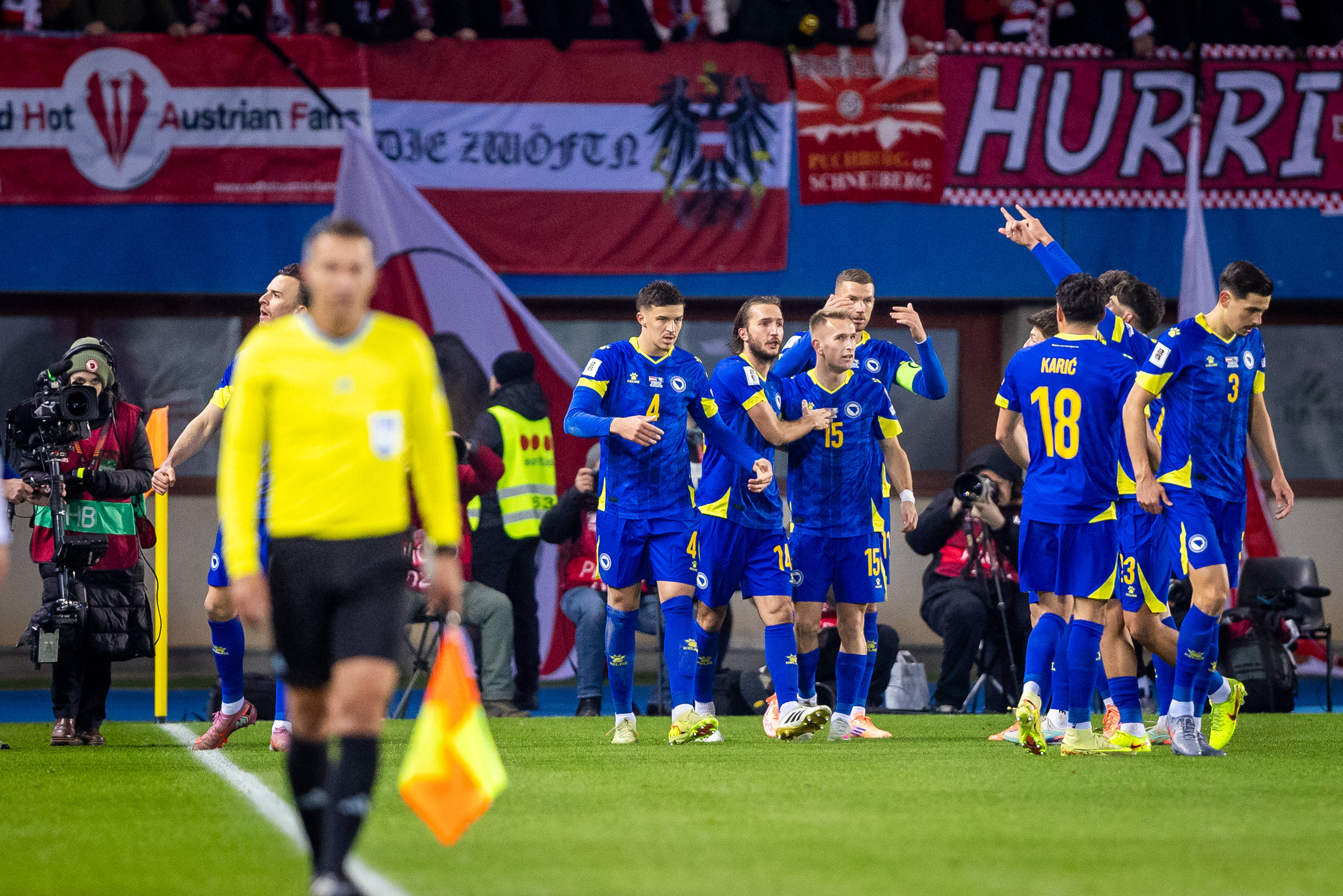 Bosniacii au avut emoții pe finalul primei părți, când Konrad Laimer a marcat în minutul 43. Totuși, golul său a fost anulat la VAR, iar bosniacii au intrat în avantaj la pauză și au putut visa în continuare la calificarea directă la turneul final din Statele Unite ale Americii, Canada și Mexic.