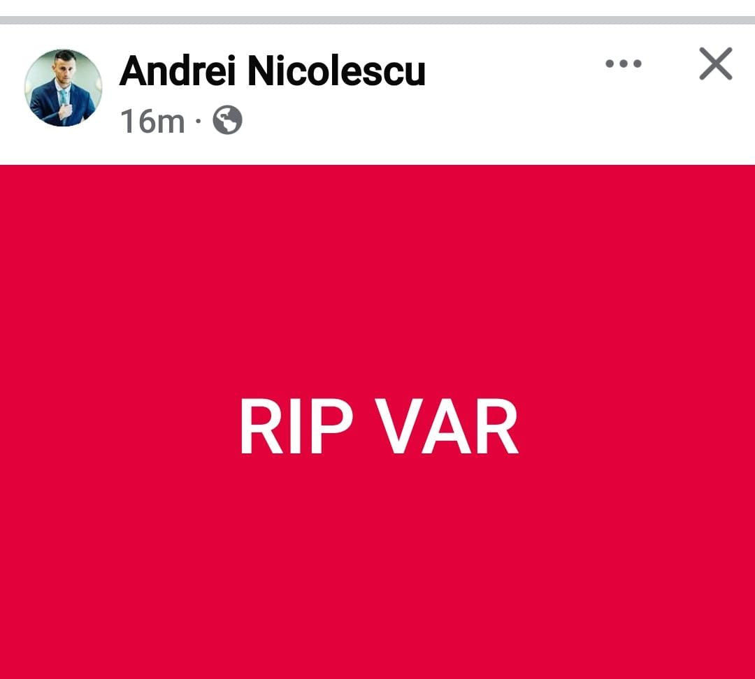 Imediat după finalul meciului FCSB – Dinamo, scor 2-1, Andrei Nicolescu a postat pe Facebook mesajul „RIP, VAR”, criticând decizia de a nu acorda penalty pentru Dinamo la faza din minutul 34.