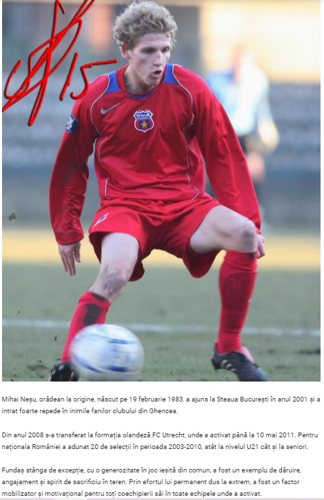 "In sezonul 2005-2006, a atins cu Steaua faza semifinala in Cupa UEFA, cea mai notabila performanta a unei echipe de club din ultimele decenii, unde a fost eliminata dramatic de echipa engleza, Middlesbrough", au scris 'militarii'.