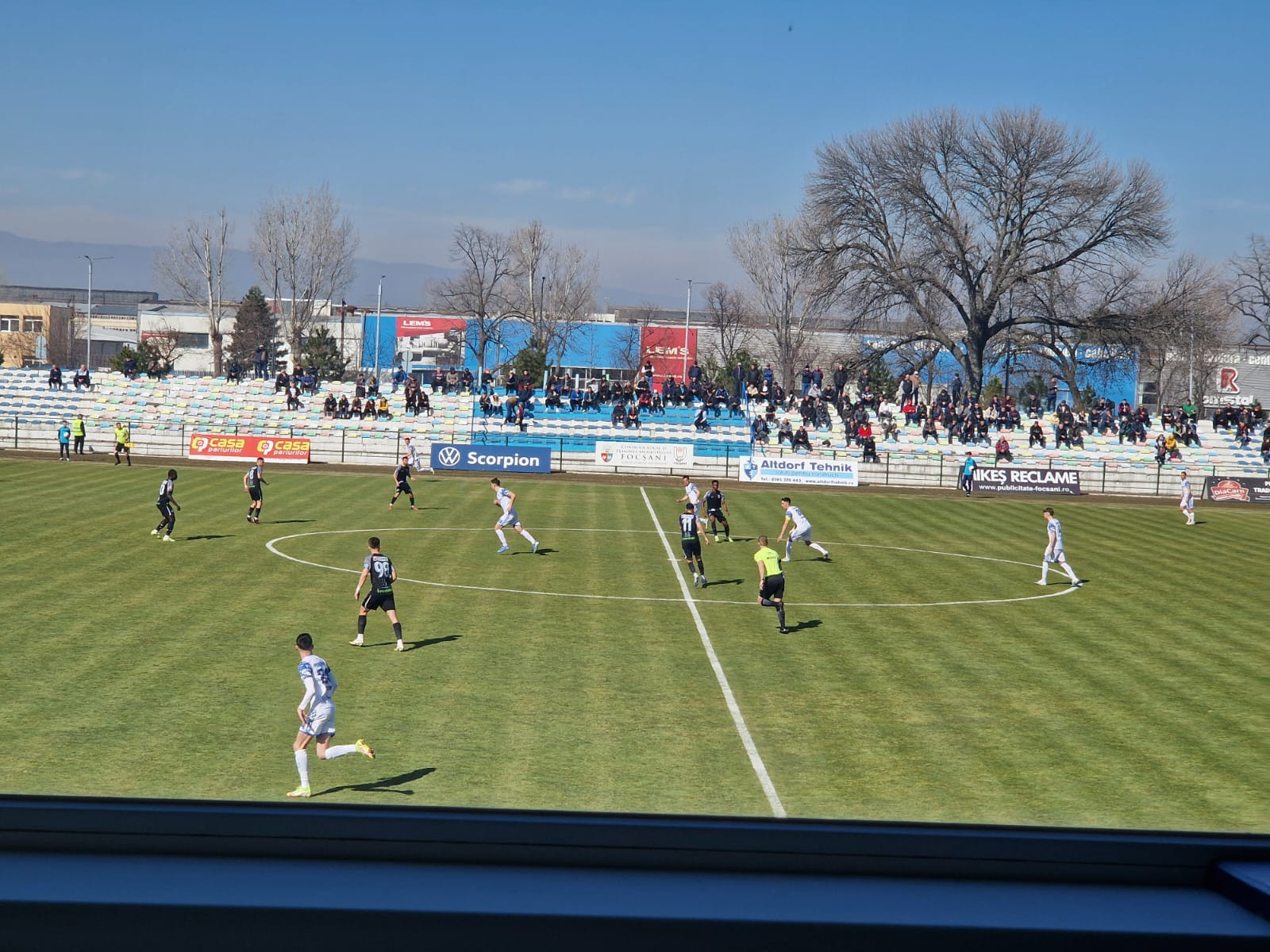 Pe stadion s-au aflat 500-600 de spectatori, însă condițiile pentru fani au lăsat de dorit. Oaspeții au fost nevoiți să stea în picioare, întrucât multe bănci din sectorul destinat lor erau rupte sau lipsă.