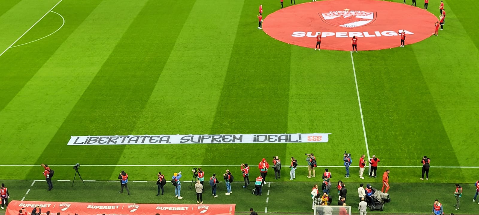 Înainte de startul meciului, fanii celor două echipe au afișat bannere prin care au cerut "libertate pentru suporteri".