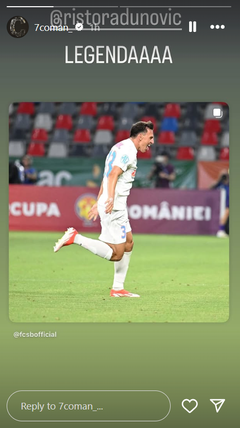 Radunovic, în vârstă de 33 de ani, a ajuns la 187 de meciuri în tricoul FCSB-ului, cu 7 goluri și 23 de pase decisive.