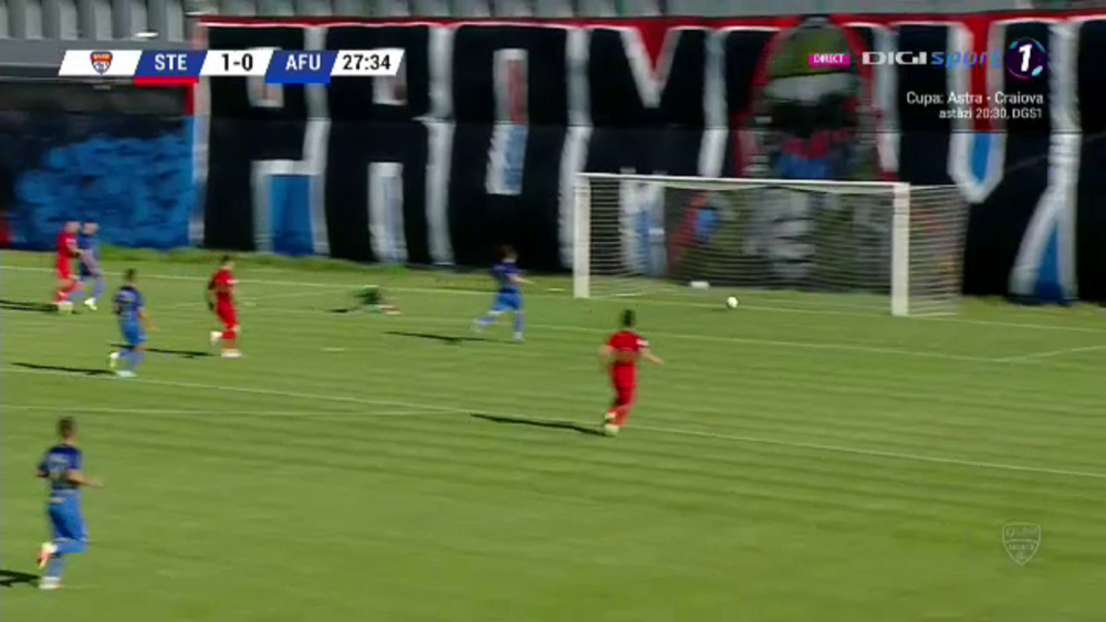 Min. 6: GOOOOL STEAUA! Zaharia profita de eroarea din defensiva oaspetilor, scapa singur cu portarul si trimite balonul cu un lob direct in plasa!
