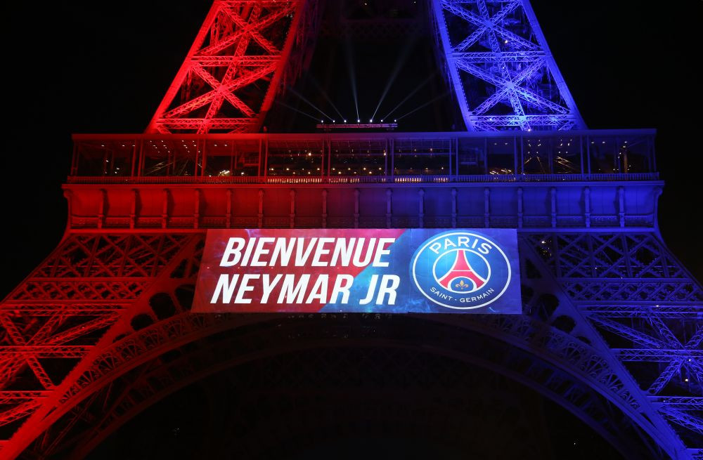 Cei de la PSG nu se uita la bani nici dupa acest transfer. Au platit 50.000 de euro doar pentru ca Turnul Eiffel sa fie pentru cateva ore in culorile clubului iar mesajul "Bine ai venit, Neymar" sa fie afisat.