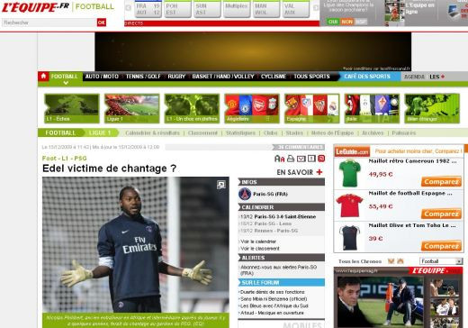 Fostul portar al echipei Rapid, Apoula Edel, in prezent la Paris Saint-Germain, a fost santajat de un intermediar, Nicolas Philibert, scrie cotidianul Le Parisien, citat de l'equipe.fr.