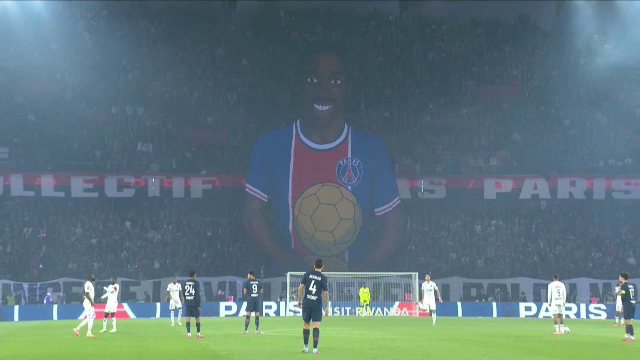Cu Ousmane Dembele lăsat în afara lotului din cauza unor probleme medicale și cu Luis Enrique aflat în tribună pentru prima repriză a meciului cu Auxerre, ultrașii lui PSG au creat o atmosferă electrizantă înaintea partidei și au realizat o scenografie specială pentru cei doi mari câștigători de la gala Balonului de Aur.