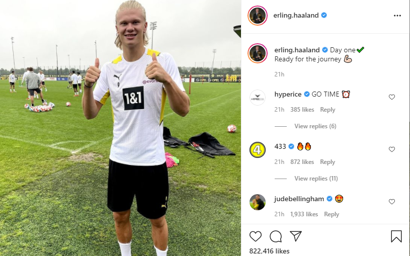 Varful de atac l-a lasat pe Mino Raiola sa se ocupe de noua sa destinatie si s-a prezentat la primul antrenament al lui Dortmund pentru noul sezon. A tinut sa marcheze acest moment si cu o fotografie postata pe Instagram, la care a adaugat descrierea "Prima zi. Pregatit pentru calatorie".