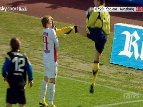 In meciul dintre Koblenz si Augsburg, incheiat 1-0 pentru oaspeti, portarul lui Koblenz, Paucken, a avut o intrare criminala la Thurk.