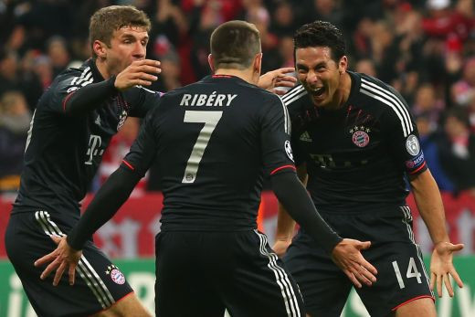 Bayern: Neuer, Dante, Boateng, Lahm, Ribéry, Javi Martínez, Robben, Müller, Alaba, Schweinsteiger, Pizarro